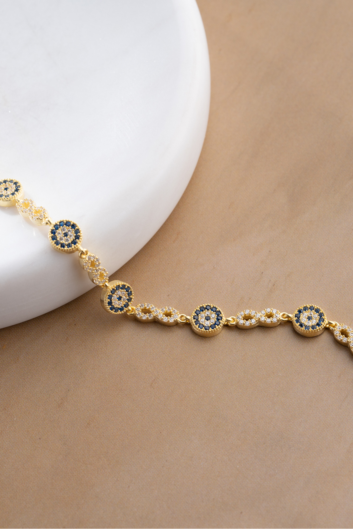 Tasarım• Sonsuzluk Motifli Nazar Boncuklu Bileklik modeli zarif ve dikkat çekici bir duruş sunar.