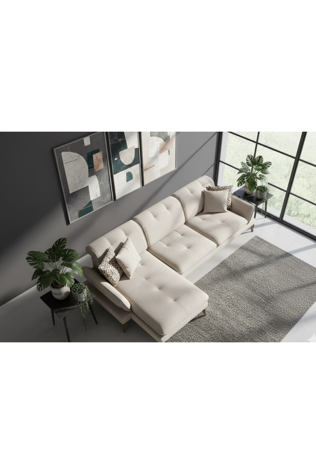 COSY KÖŞE KOLTUK, AHŞAP AYAK, SOL KÖŞE, KIRIK BEYAZ