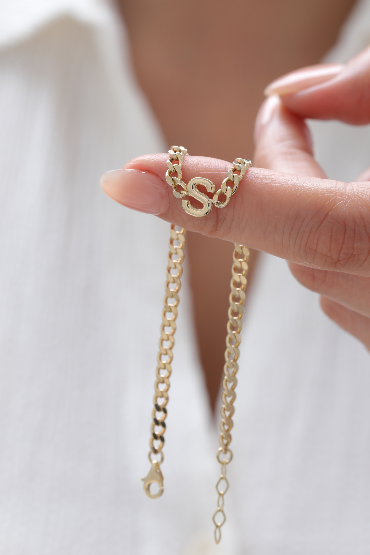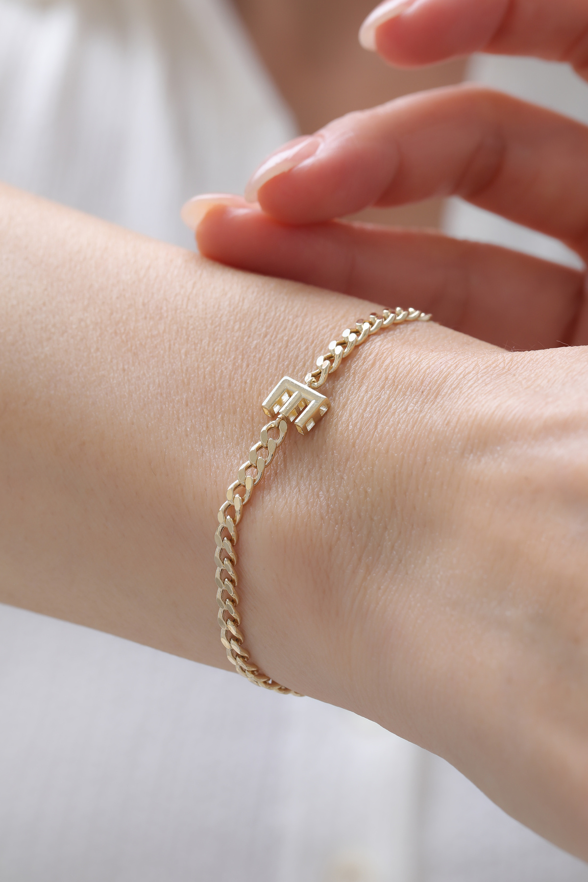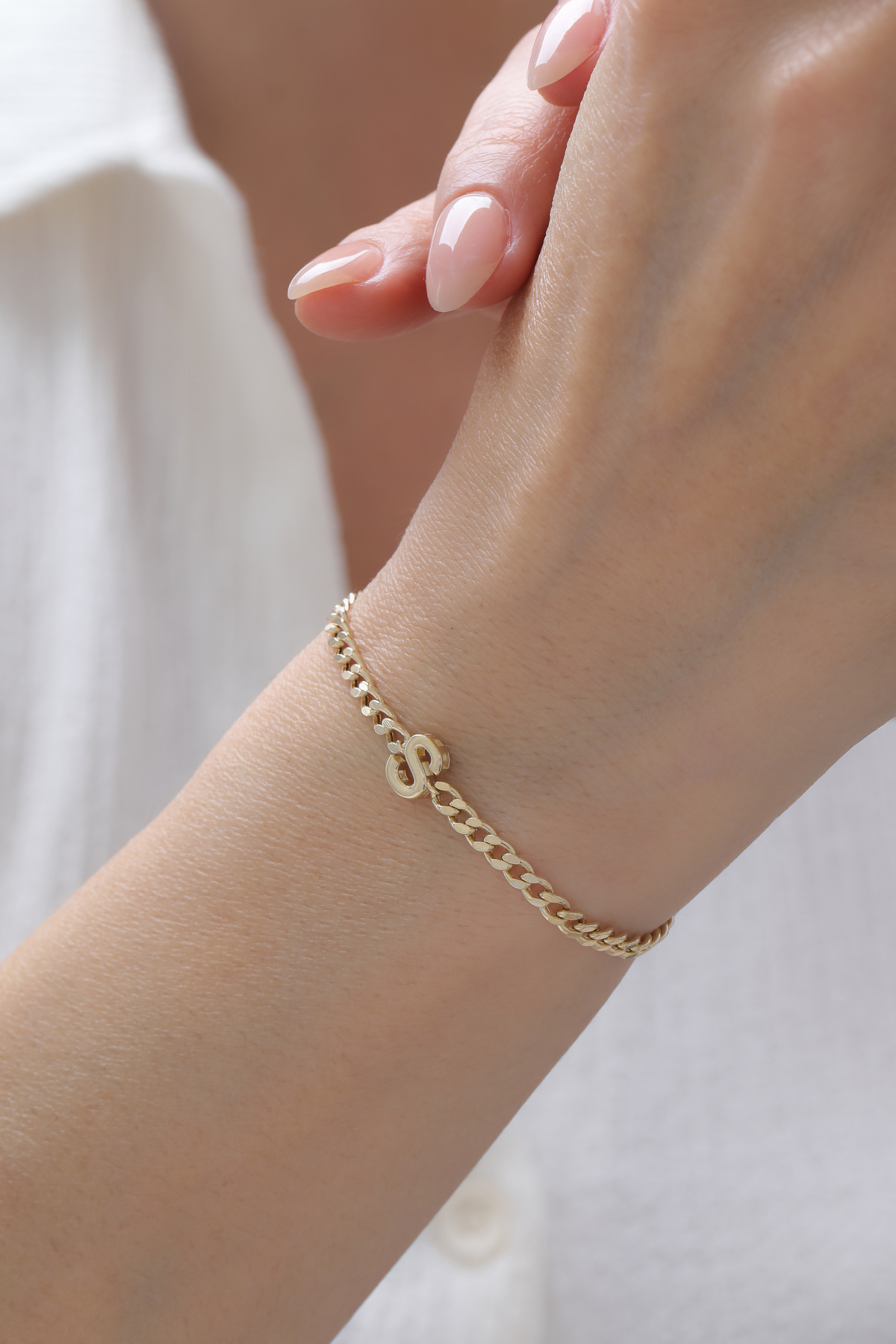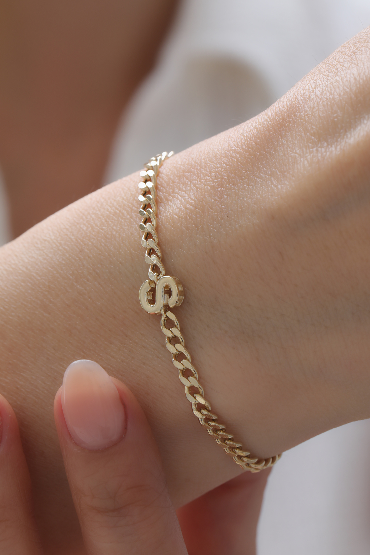 14 Ayar Altın Kişiselleştirilebilir Gurmet Harf Bileklik