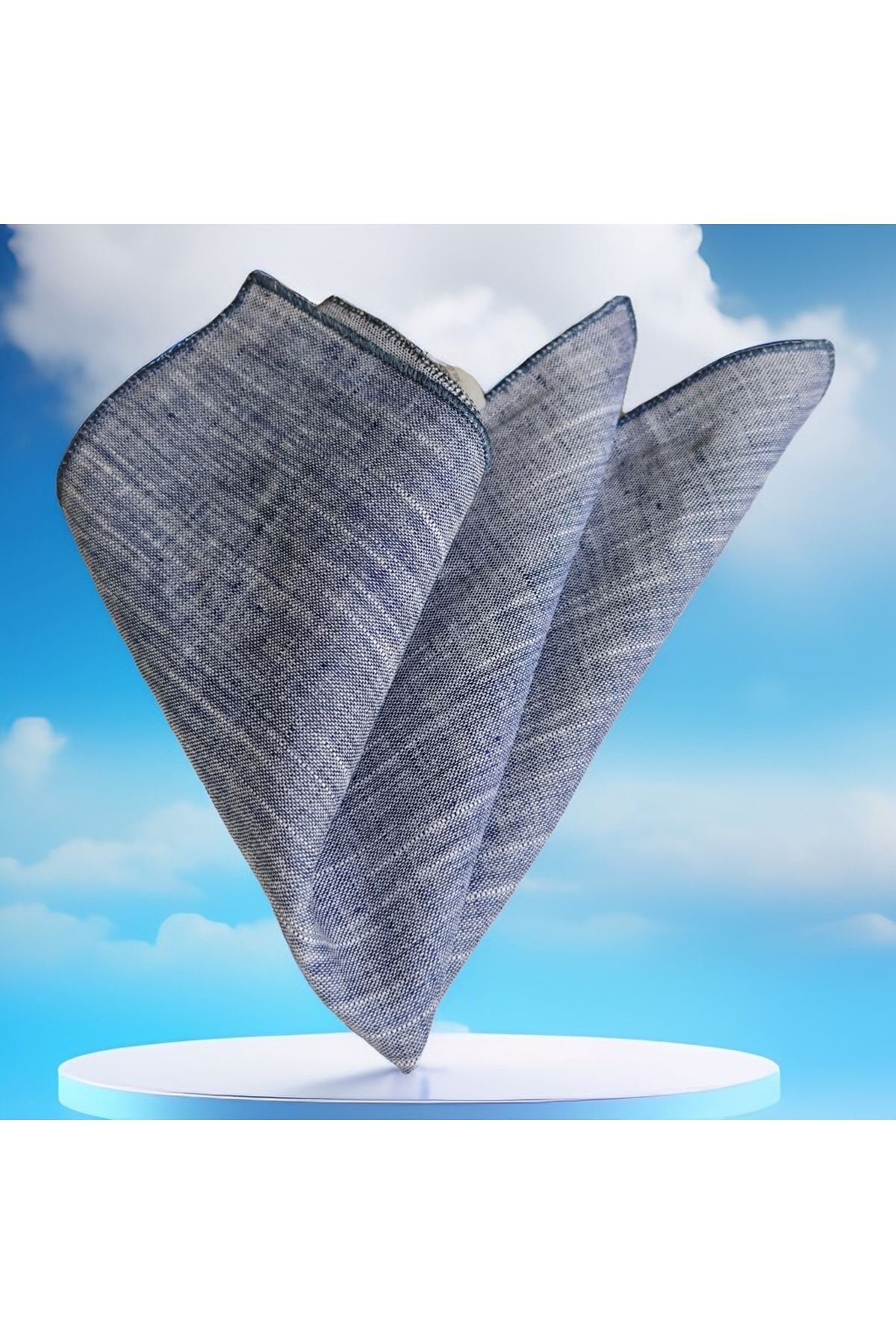 Mavi Beyaz Flam Geçişli Keten Dokuma Sade Cep Yaka Mendili
