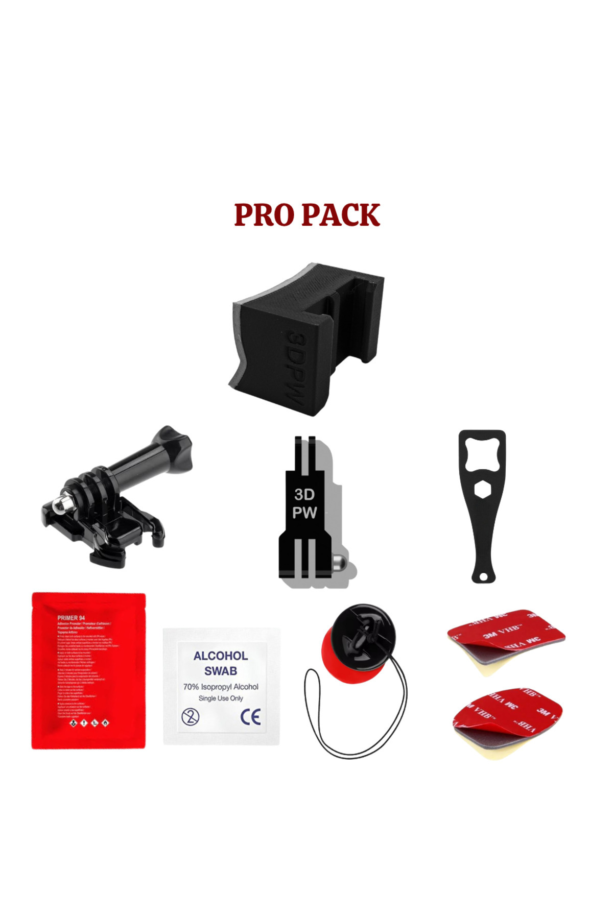 • PRO PAKET İÇERİĞİ: 1X 3M BANTLI ÇENE APARATI CHINMOUNT 1X 3M BANTLI GÜVENLİK TOKASI 1X HIZLI TAK ÇIKAR 1X VİDA 1X VİDA ANAHTARI 1X ALKOLLÜ MENDİL 1x 3M PRIMER 94 MENDIL 1X UZATMA ADAPTÖRÜ 2X 3M VHB YEDEK BANT 3DPARTWORKS CHINMOUNTS Montaj ve Kullanım Talimatları -Paketten çıkan alkollü mendil ile kask yüzeyini temizleyin ve kurutun - kurumasını bekleyin.