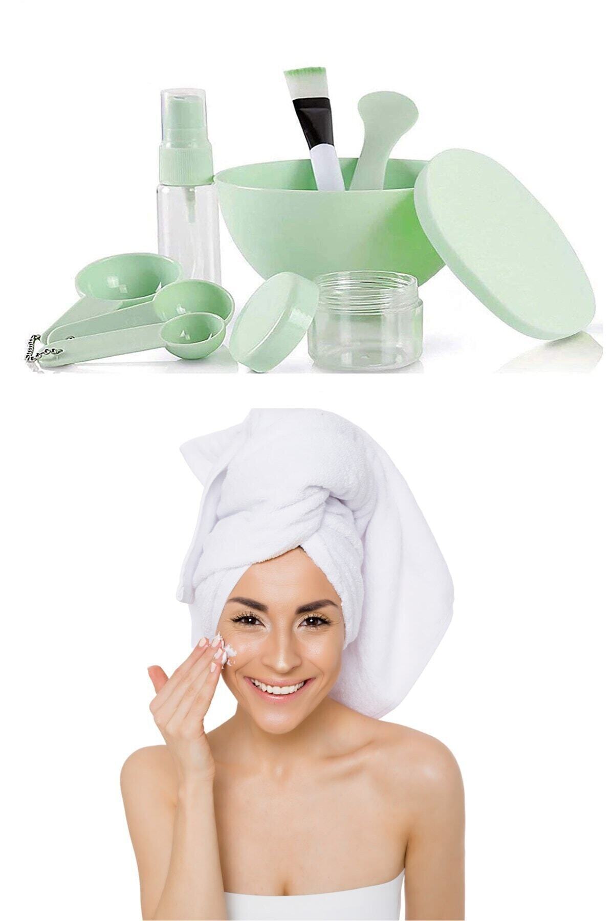9'u 1 arada maske seti: Bir karıştırma kasesi, ölçüm kaşıkları, bir sünger, bir spatula, fırça, bir sprey şişesi ve küçük bir yumuşak cam kavanoz dahildir