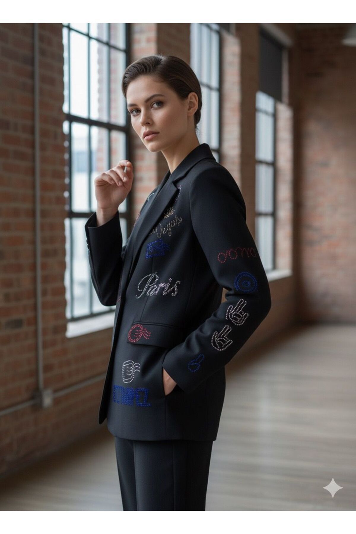 Taşlı Blazer Tek Ceket
