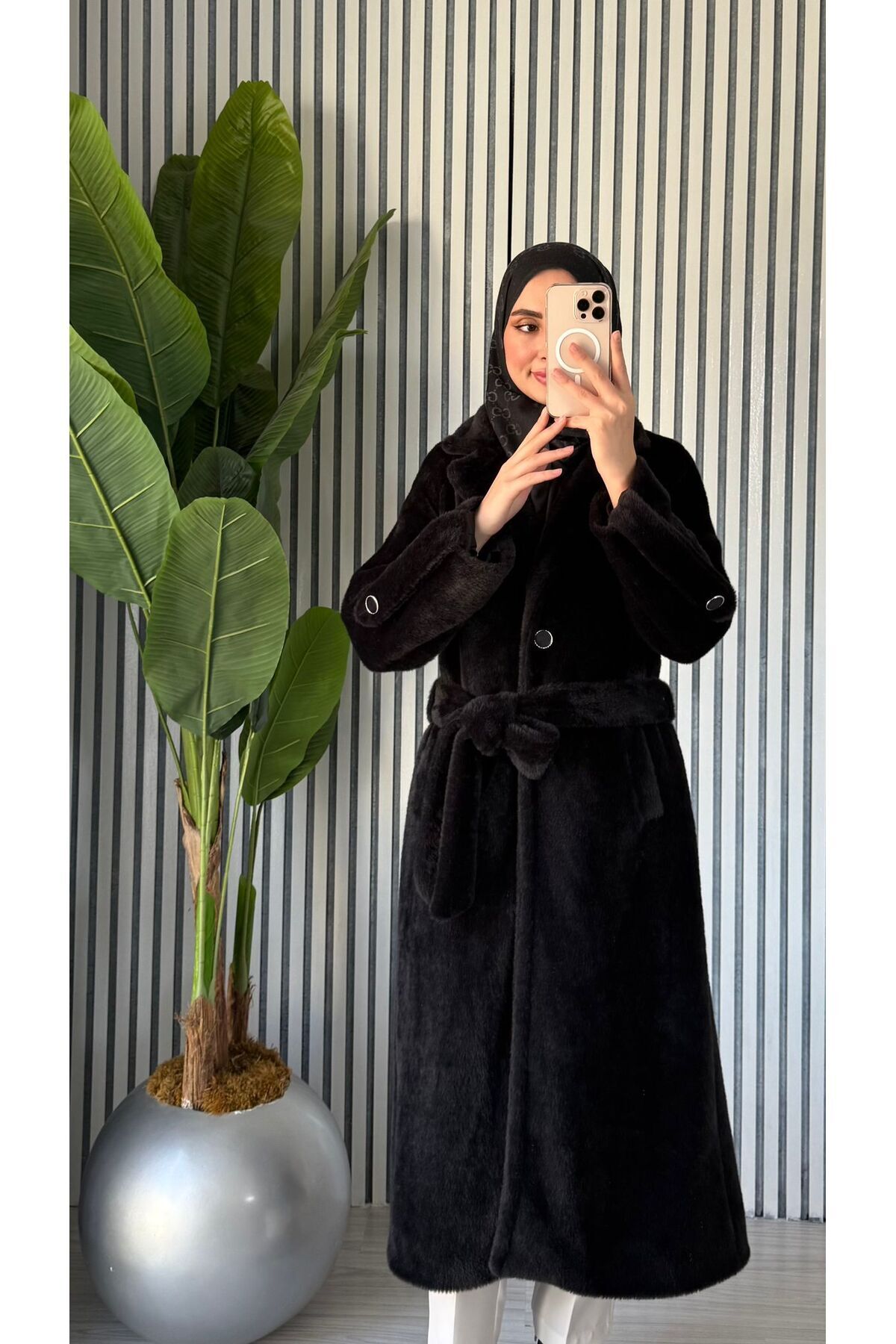 - Kış aylarında sıcak tutan, tüylü yapısıyla dikkat çeken kadın angora kaban.