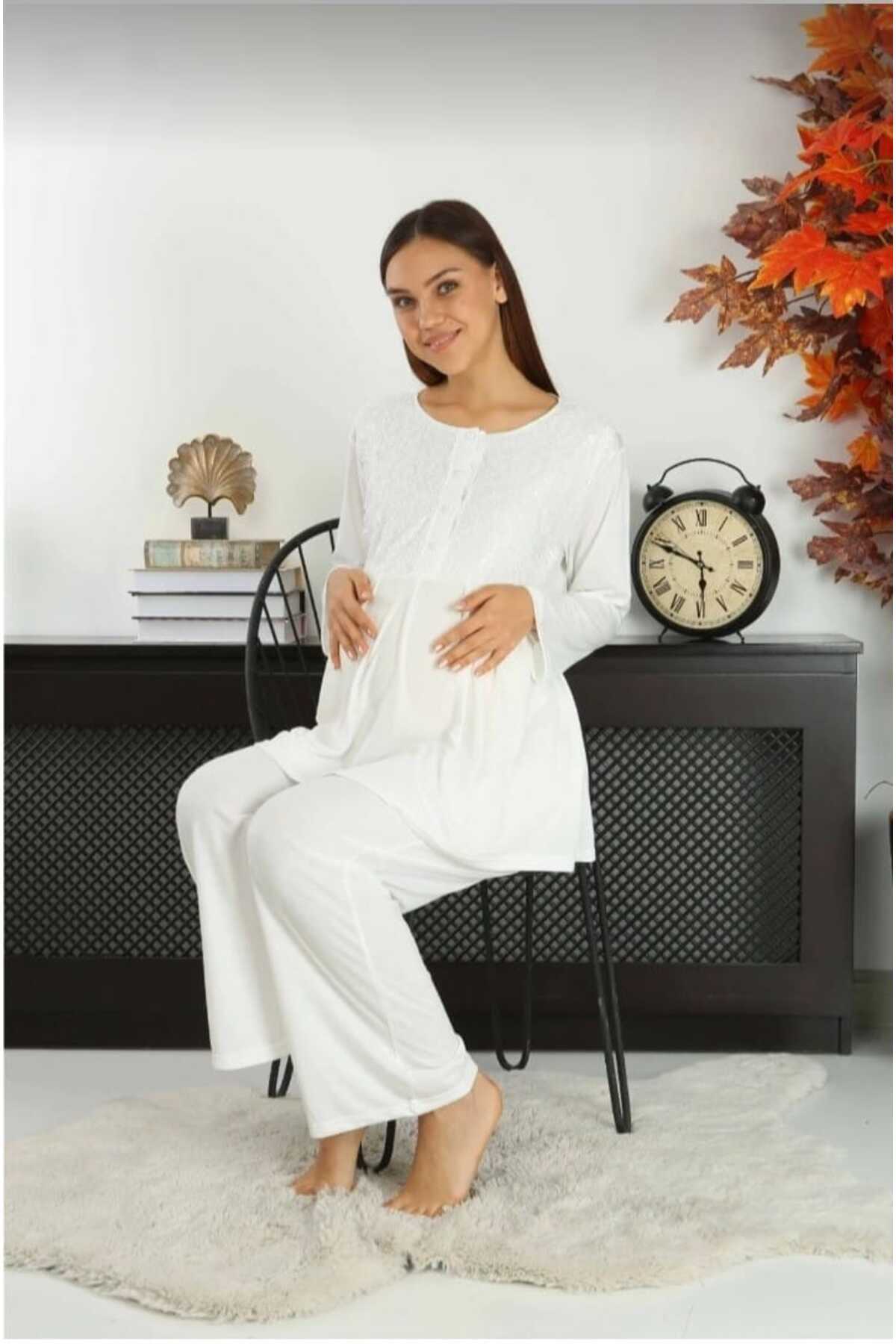 bu hamile ve lohusa pijama takımı, yumuşacık kumaşı ve esnek beli sayesinde hem hamilelik döneminde hem doğum sonrası dönemde maksimum konfor sağlar.