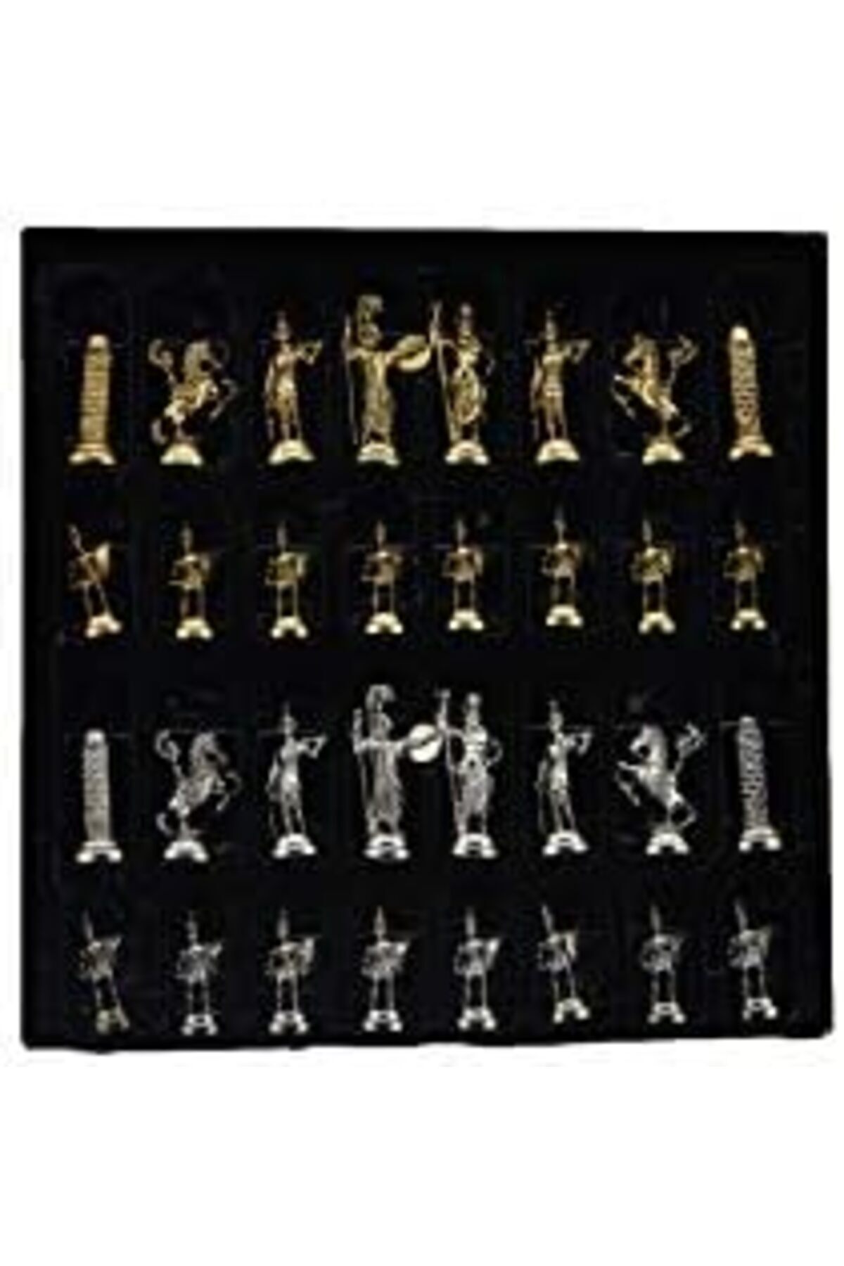 Orta Boy Metal Yunan Satranç Takımı Parlak ve Mermer Desenli Sandıklı MDF Tahtası (36x36x6 cm.