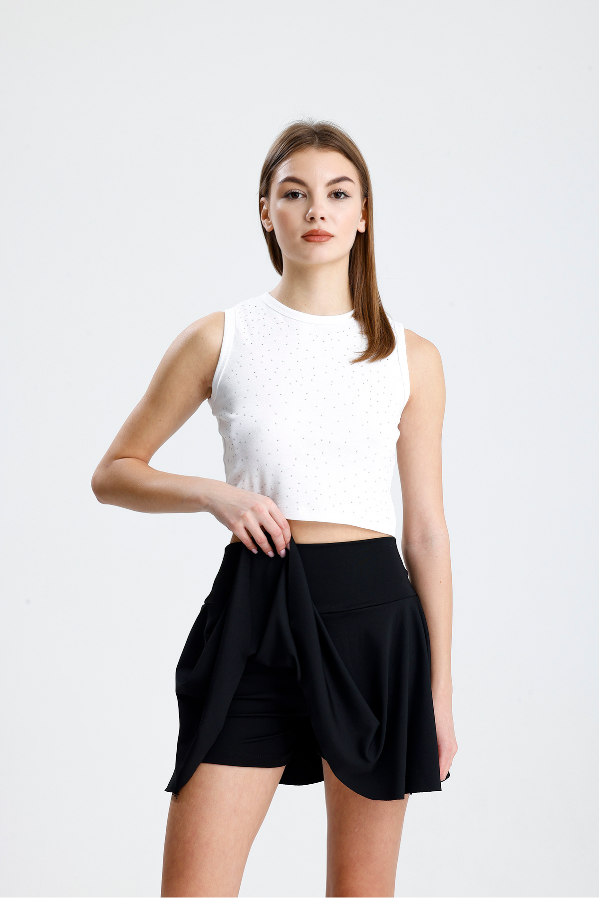 Spor Şort Etek Yüksek Bel Dalgıç Kumaş