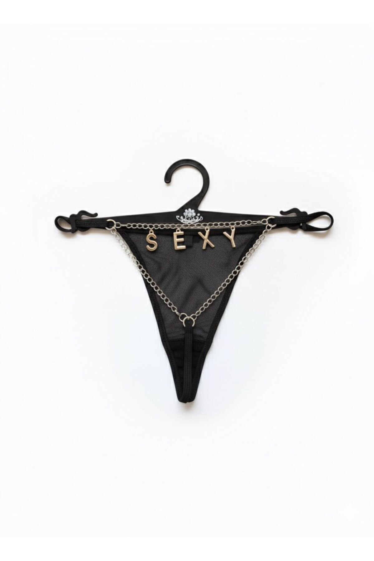 SEXY YAZILI TAŞLI AKSESUARLI TANGA BİKİNİ ZİNCİRLİ TAŞLI AKSESUAR SEVENLERİN VAZGEÇİLMEZ ÜRÜNÜ ŞIK VE KULLANIŞLI FORMUYLA ŞIK TASARIMIYLA HARİKA BİR ÜRÜNDÜR