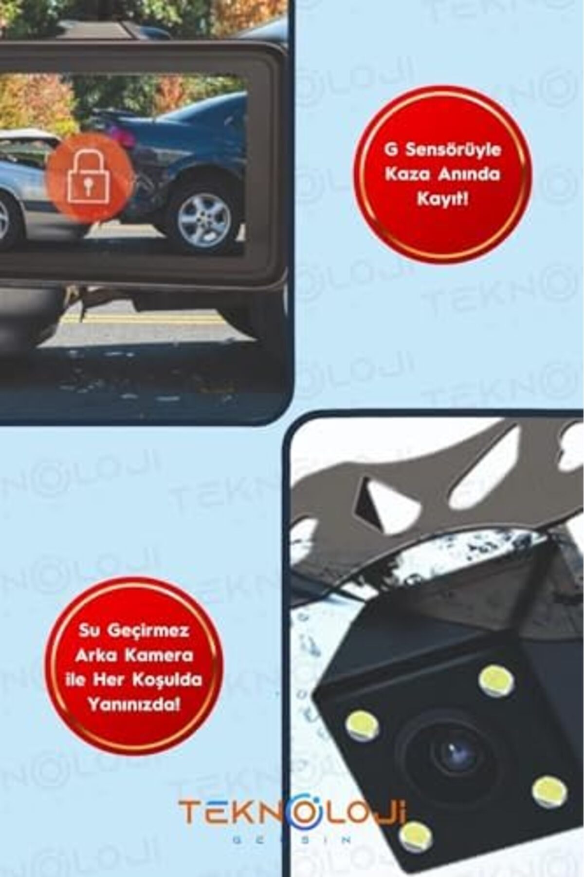 Araç İçi Kamera 4'' Lcd Ekran 3 Kameralı 170° Geniş Açı 1080p G-Sensör Gece Görüşlü Uyumlu Yol Kayıt