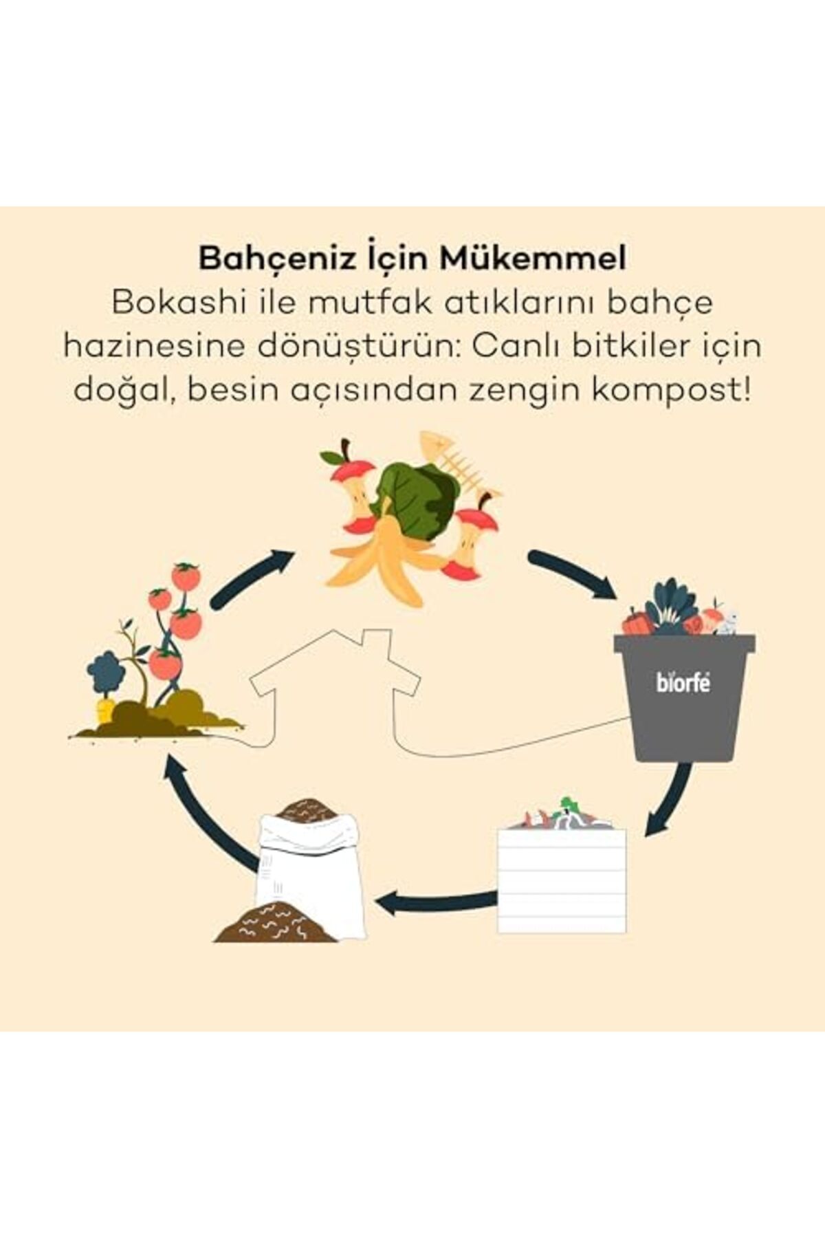 Bokashi Kepeği de tıpkı konsantre sıvı gibi içerisindeki yararlı mikroorganizmalar sayesinde, atıkların çürümeden fermente olmasını sağlar.