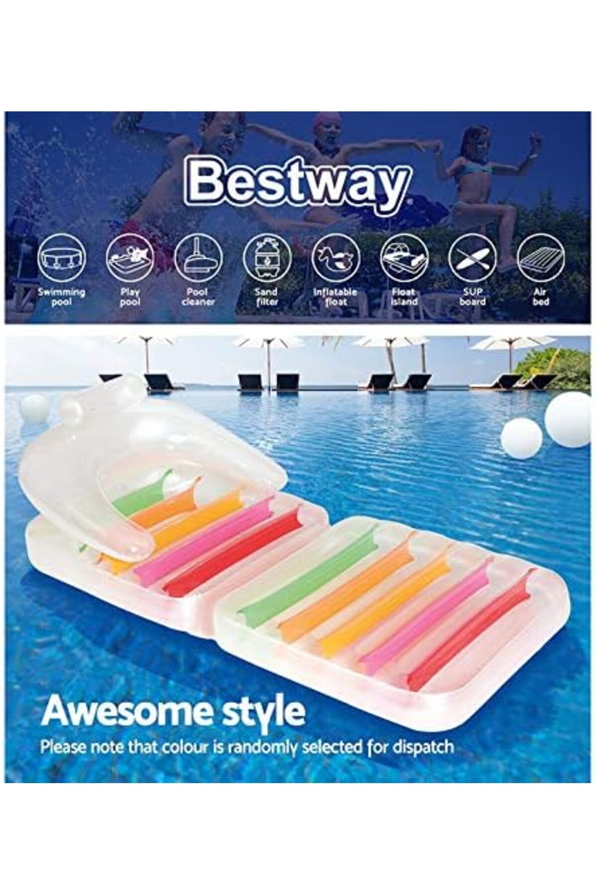 Şeffaf tasarım Dayanıklı PVC Katlanabilir tasarım, sırtlık ve kolçaklar İçerik: 1 şişme yatak, 1 onarım yaması Folding Lounge Chair – çok renkli