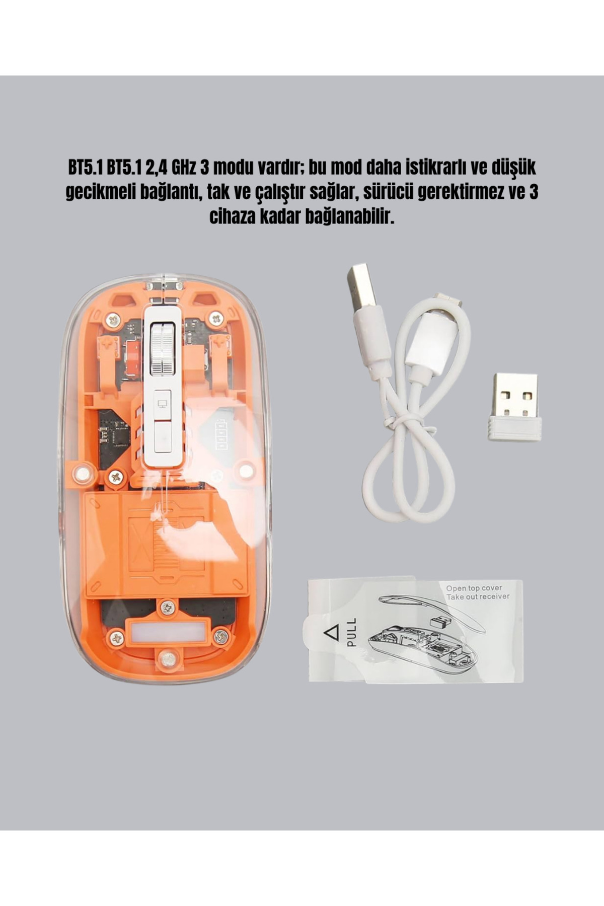 Bluetooth 5.0 ve 2.4GHz çift bağlantı seçeneği sunan yapısıyla, dizüstü, masaüstü, tablet ve TV kutuları gibi farklı cihazlara bağlanabilir.