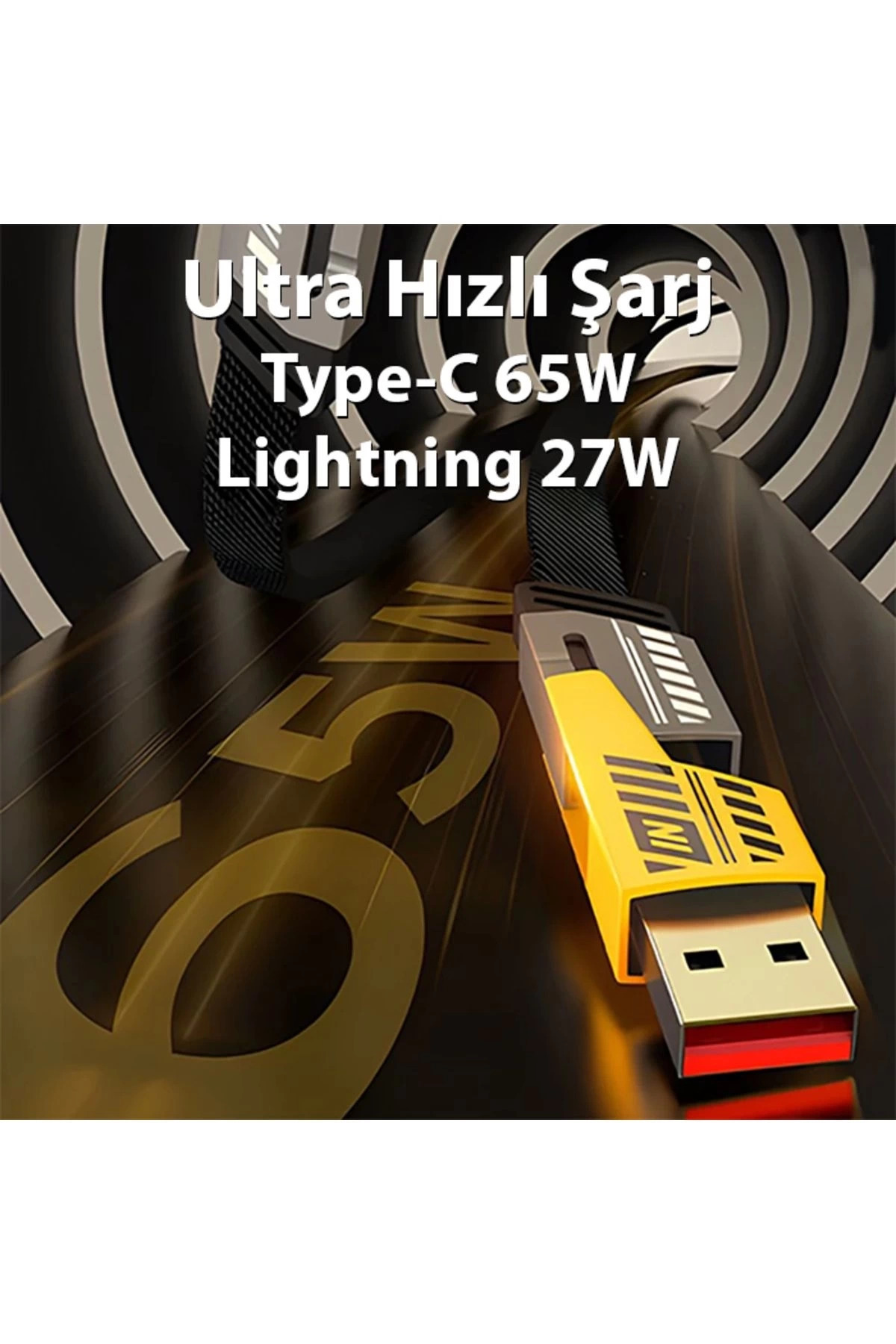 4in1 Type-c 65W to USB-A + Type-c to Lightning 27W Hızlı Şarj Kablosu SİYAH