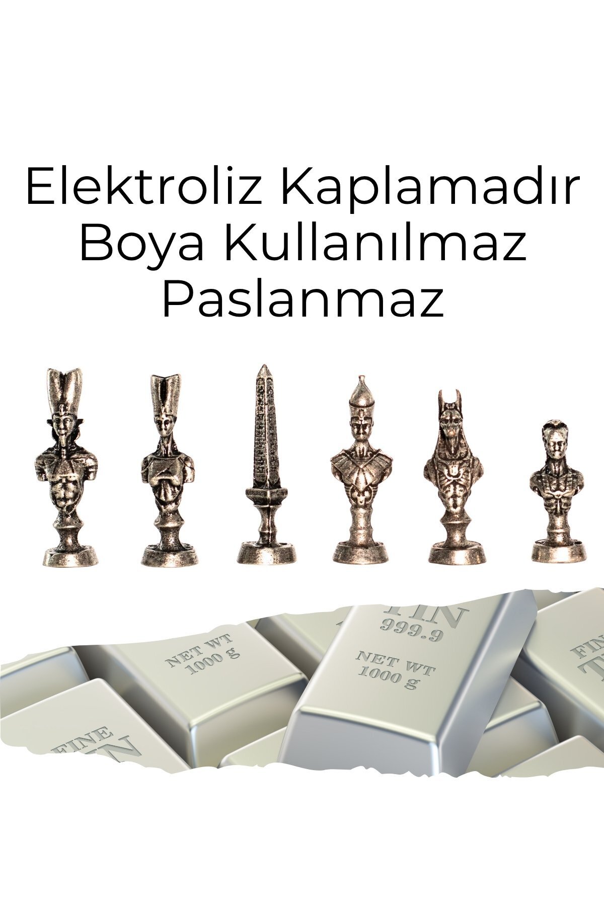 MC40 Antik Mısır Figürlü Metal Satranç Takımı - Lüks Hediyelik Satranç Takımı