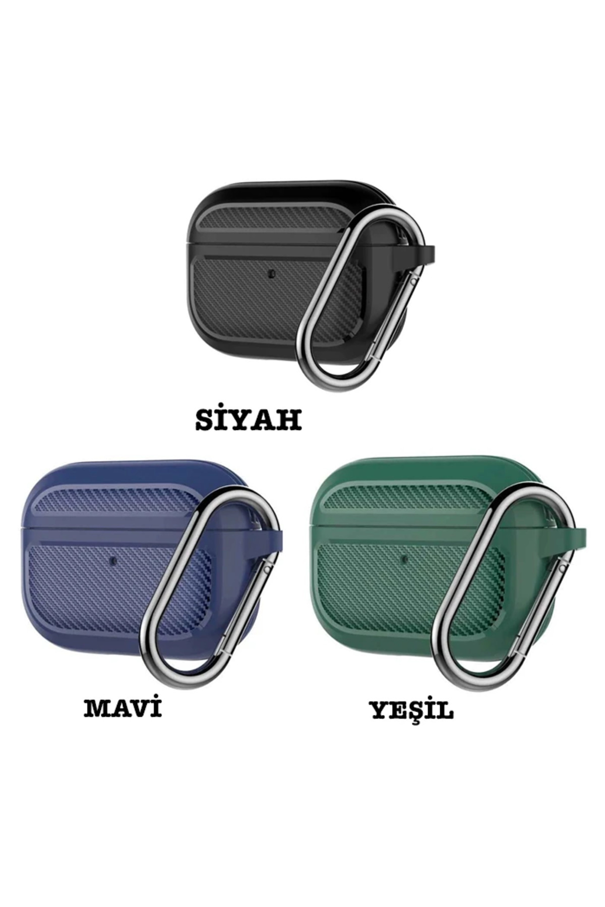 ALLY Karbon Fiber AirPods Pro Kulaklık Kancalı Silikon Koruma Kılıfı-(5775)