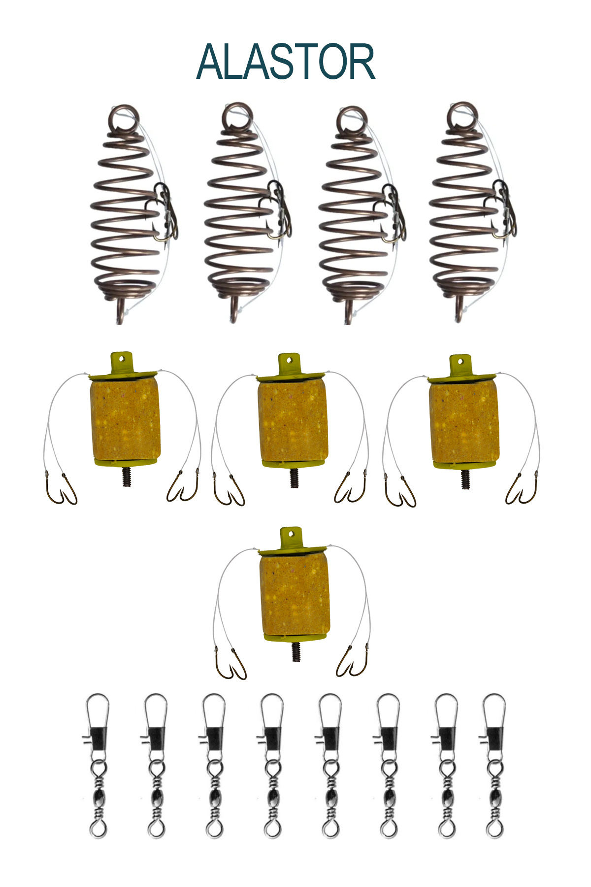 4 adet iğneli sazan yayı 4 adet küspeli sazan takımı 8 adet klipsli fırdöndü
