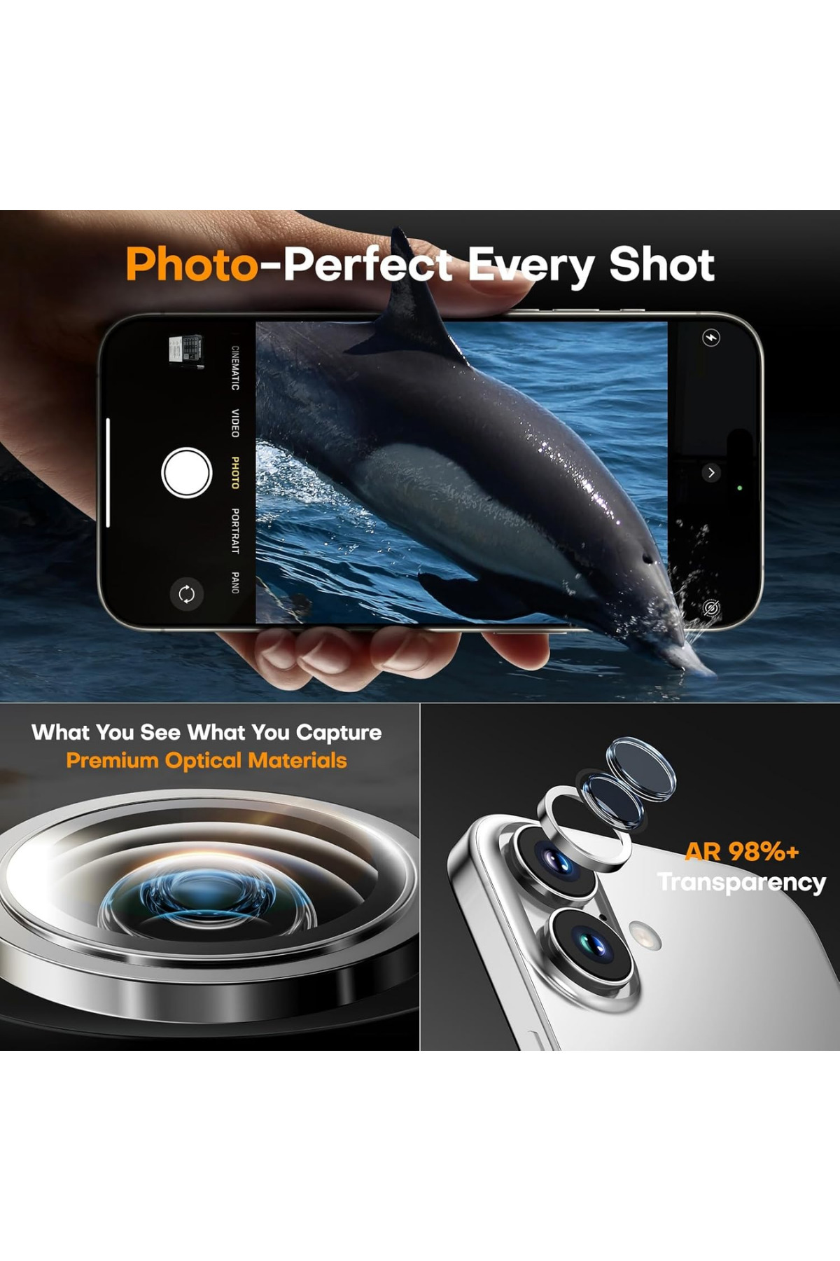 - iPhone 17 modeli ile tam uyumlu, kamera lensinizi çizilmelere ve darbelere karşı koruyan temperli cam koruyucu.