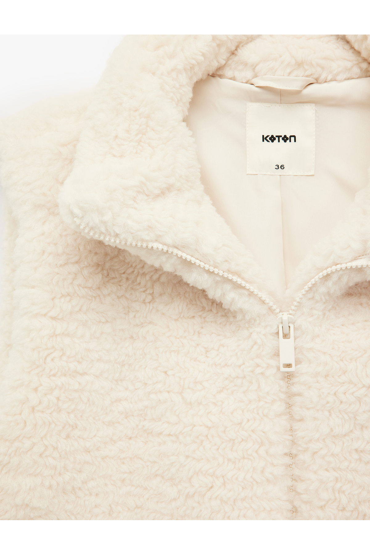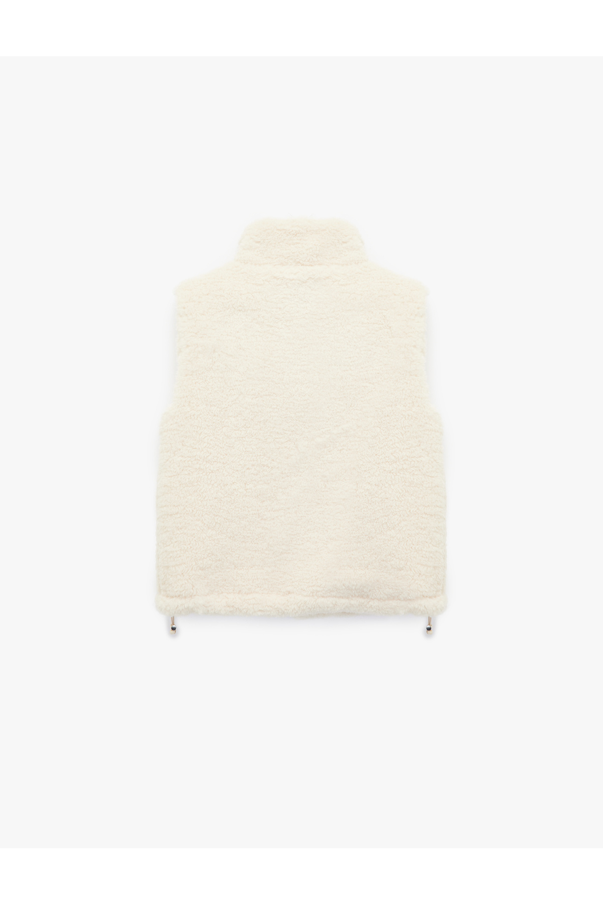 Cepli Dik Yaka Kolsuz Fermuarlı Crop Peluş Yelek