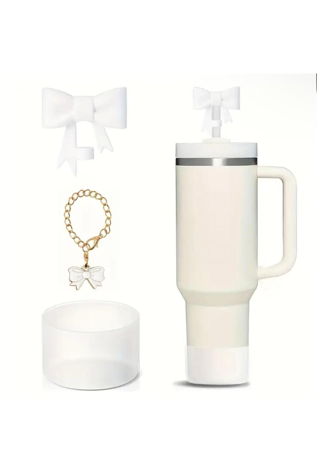1 Takım 3 Parça 10mm Şık Fiyonk Silikon Pipet Ucu, 30&40oz Termoslar için Ayarlanabilir Alaşım Bardak Süsü ve -Çarpma Koruma Kılıfı,