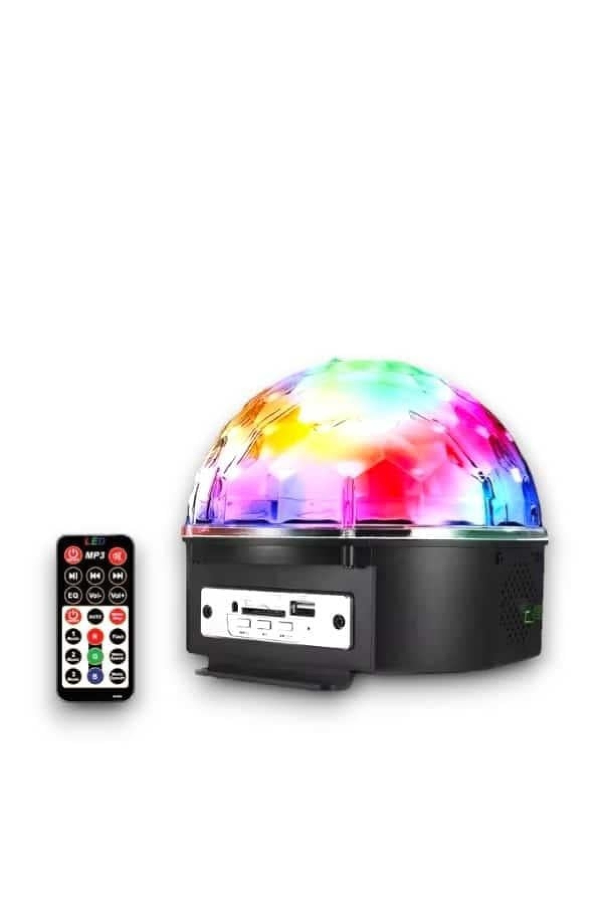 SD Kart ve USB Girişli LED Işıklı Kristal Yarım Küre ile kırmızı, mavi ve yeşil olmak üzere 3 farklı renk kombinasyonu müzik ritmine ayak uyduruyor.