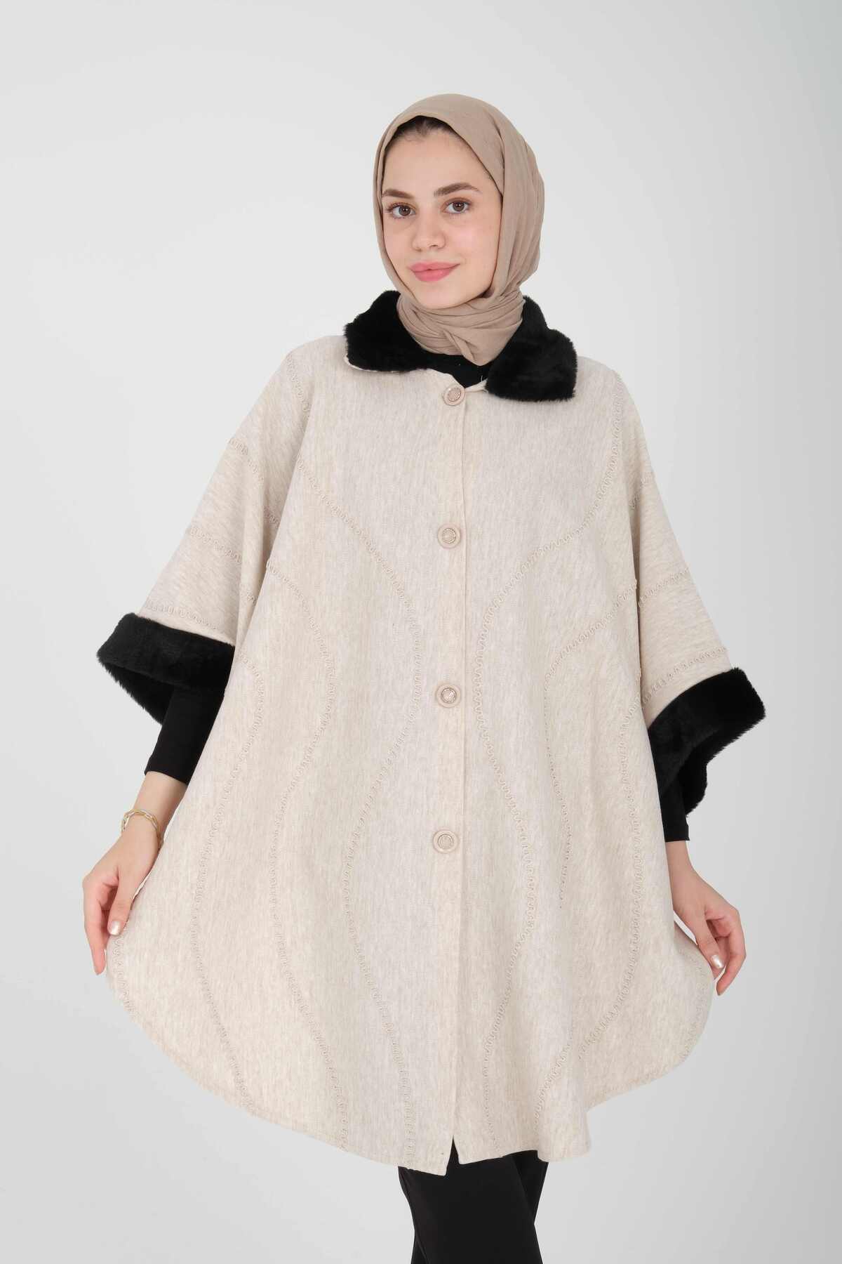 Kadın Çelik Örme Nakışlı Standart Beden Panço