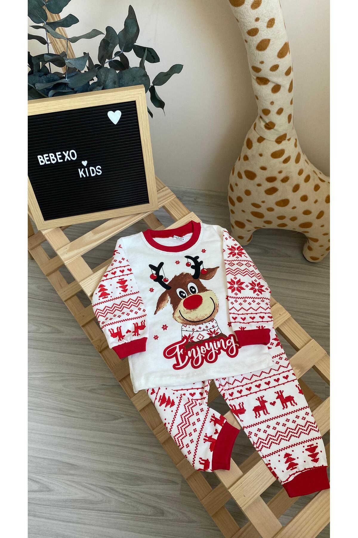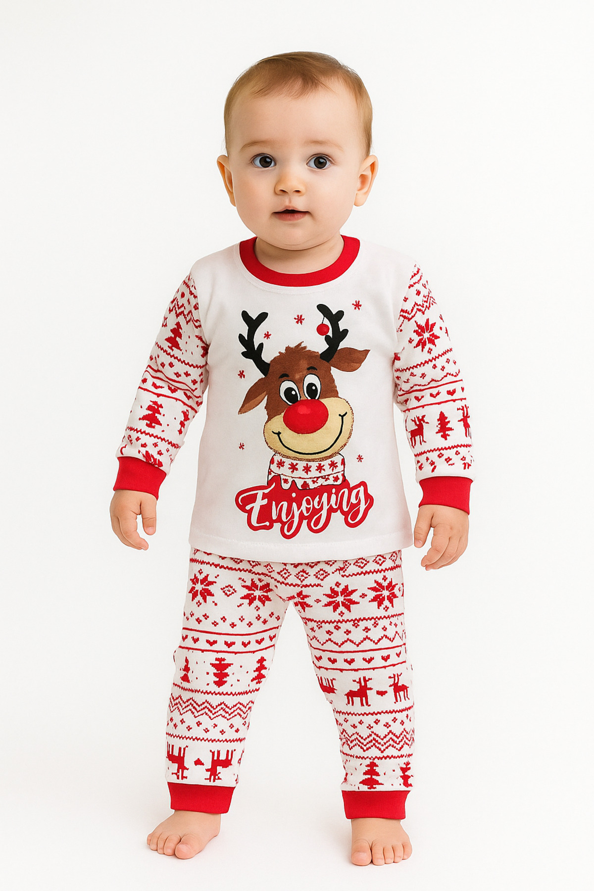- Unisex tasarımı ile hem kız hem de erkek bebekler için uygun, geyik desenli yılbaşı-yeniyıl temalı pijama takımı - İki parçadan oluşan paket içeriği ile hem üst hem de alt parça dahil, tam bir ikili takım olarak gelir.
