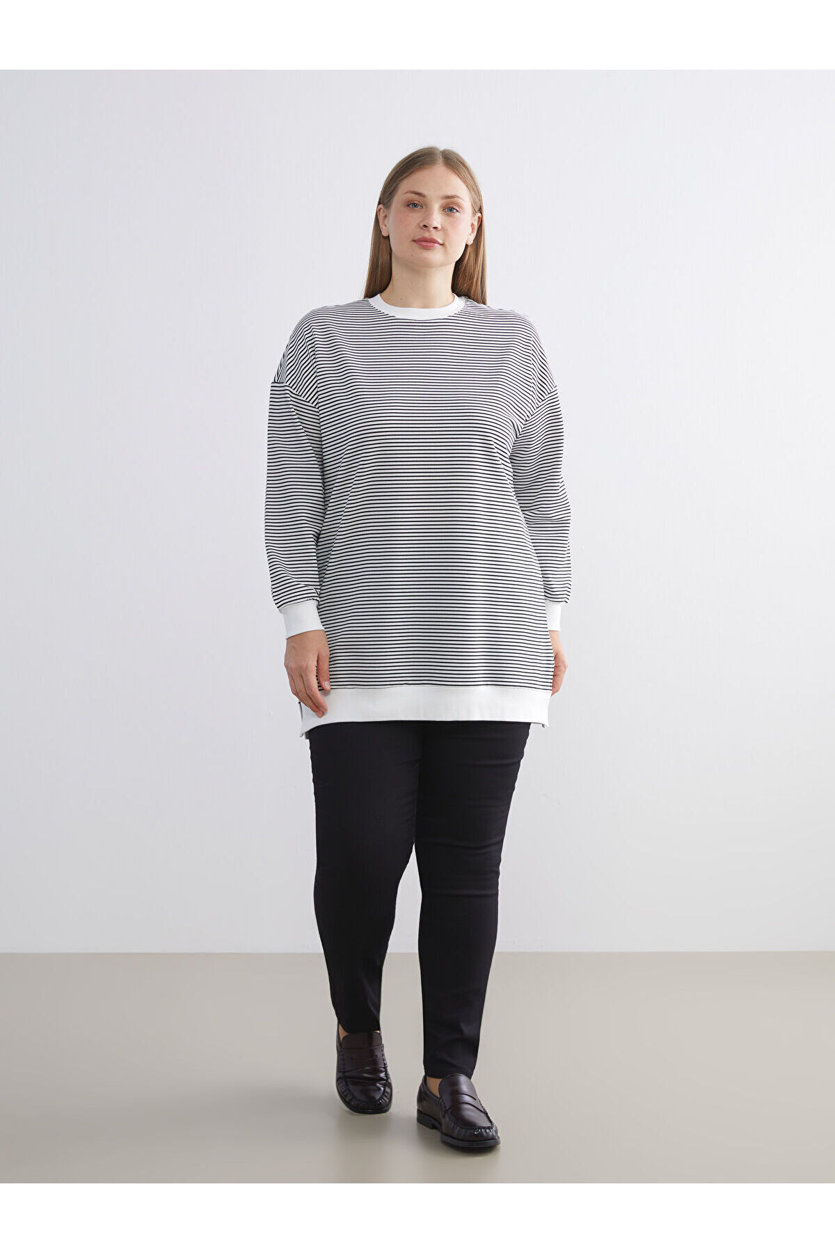 Vizyon Yeni Sezon Büyük Beden Çizgili Kadın Sweatshirt Tunik