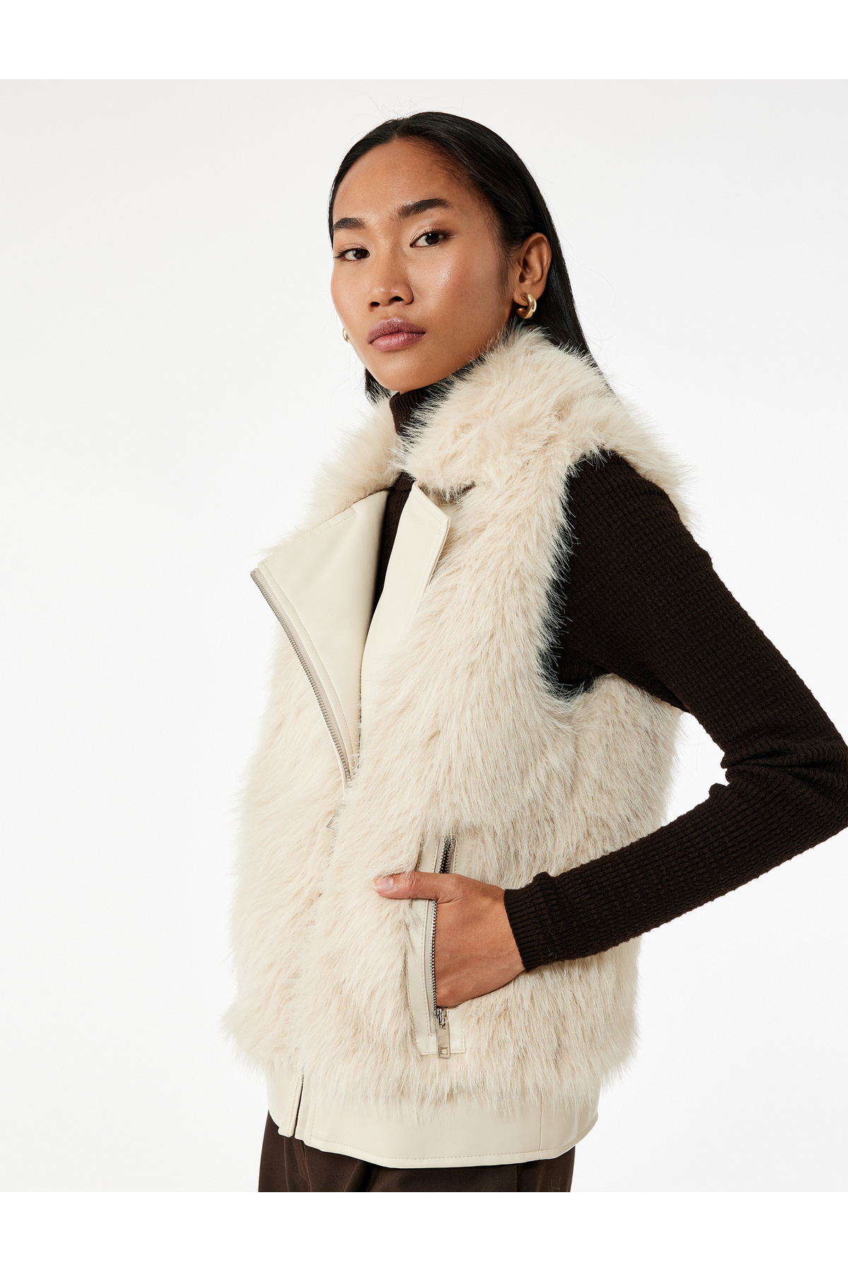 Kolsuz Fermuarlı Cepli Crop Suni Kürk Yelek
