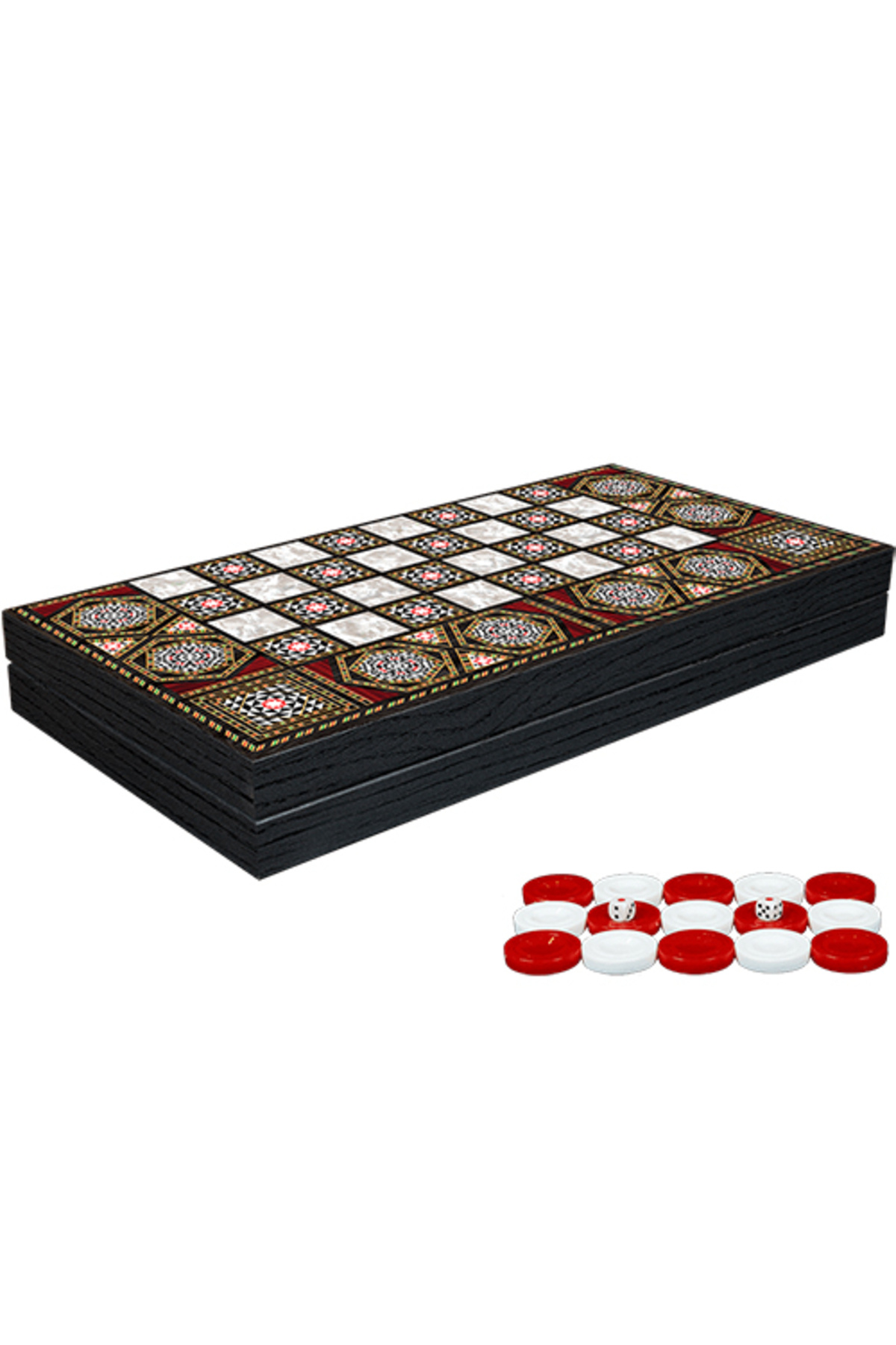 İç yüzeyindeki özel desenler oyunun görselliğini artırırken taşlarıyla birlikte eksiksiz bir oyun seti sunar.