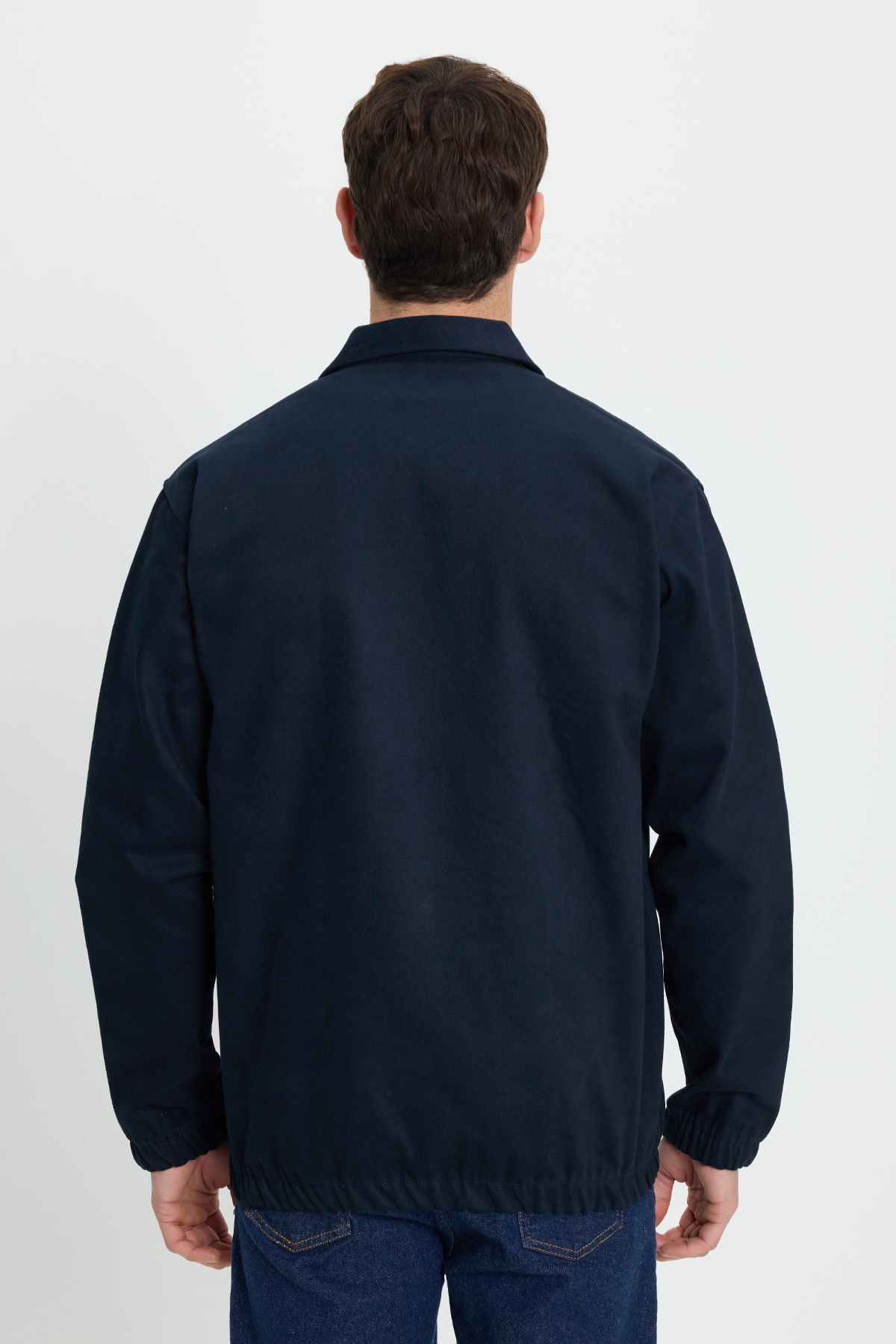 Erkek Relax Fit Rahat Kesim Çift Cep Kapaklı Fermuarlı Beli Lastikli Düz Lacivert Ceket Mont Gömlek