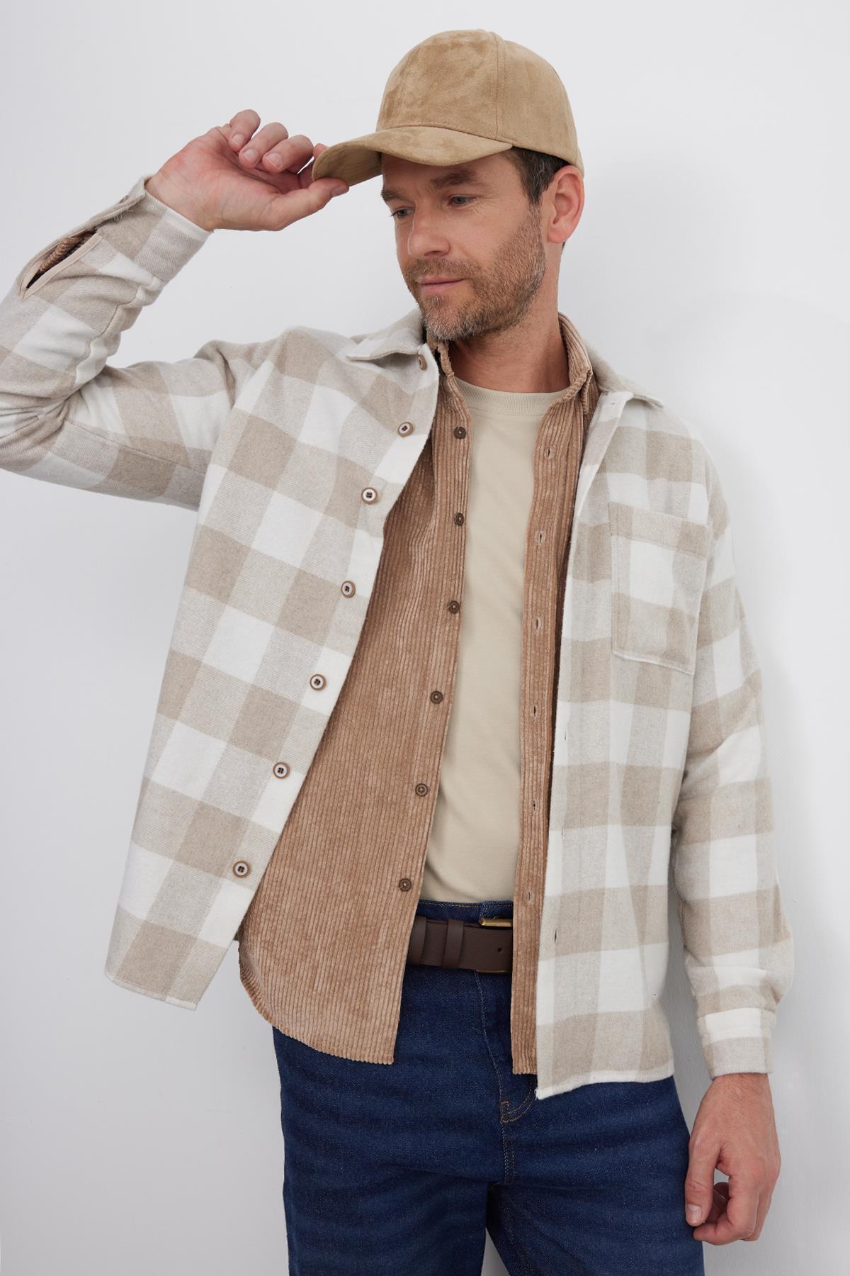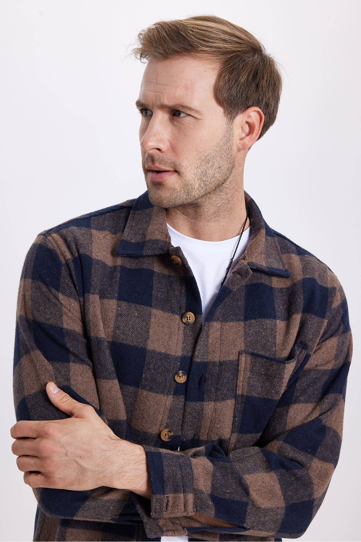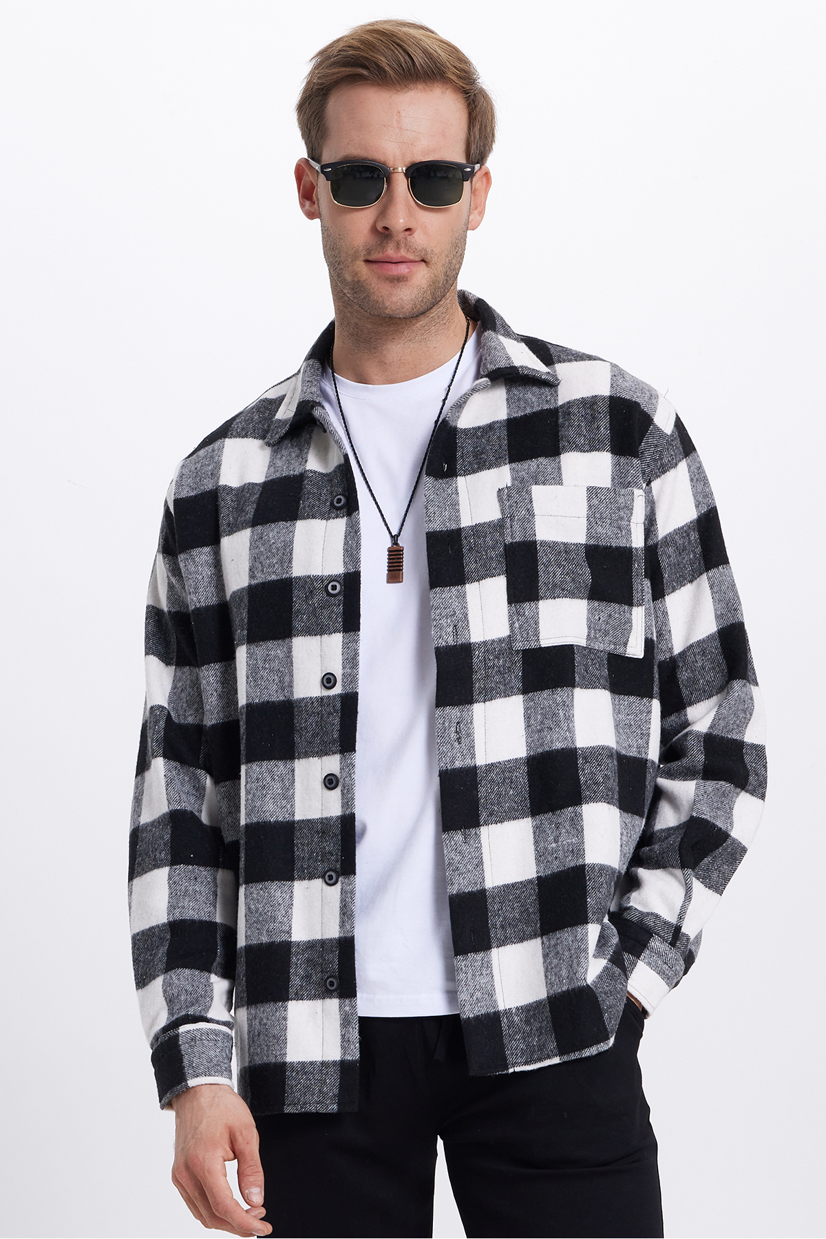 Erkek Relax Fit Rahat Kesim Uzun Kollu Cepli Dama Desen Kareli Apaş Yaka Kışlık Oduncu Gömlek