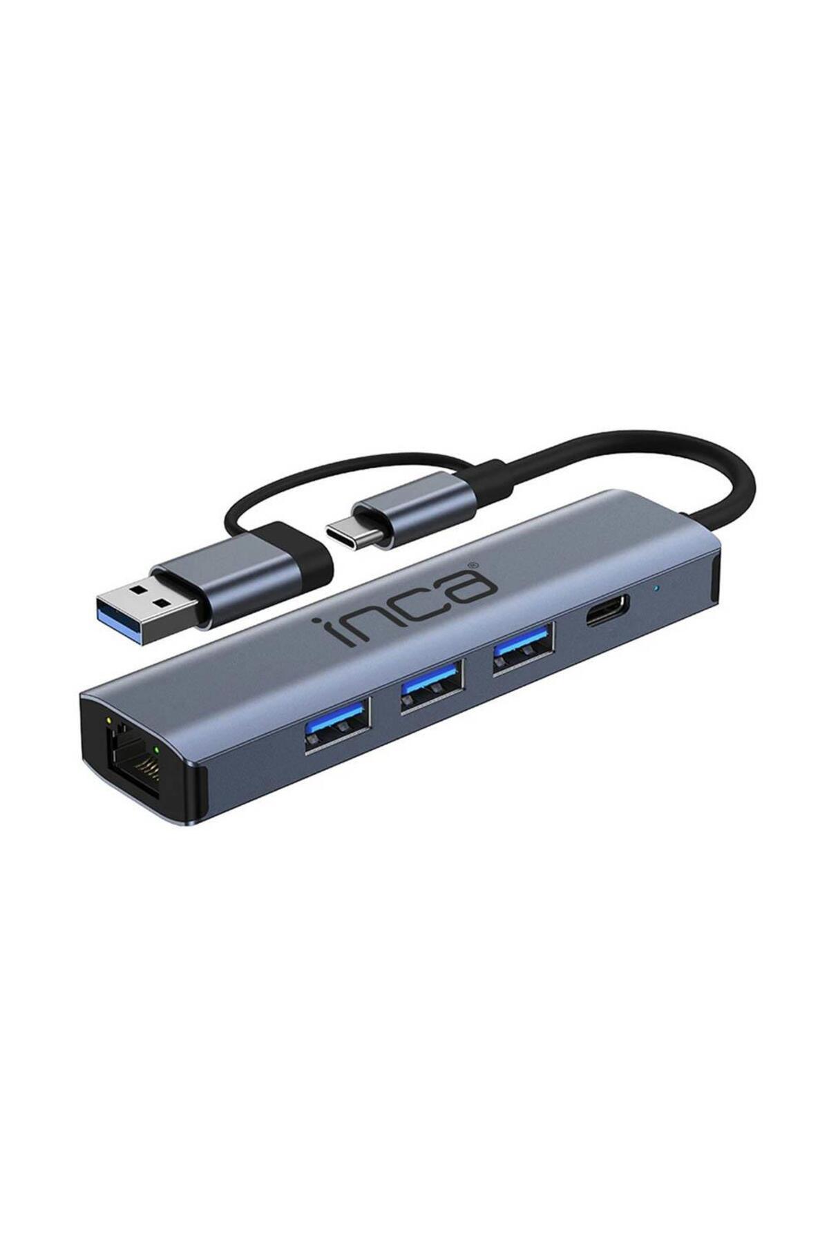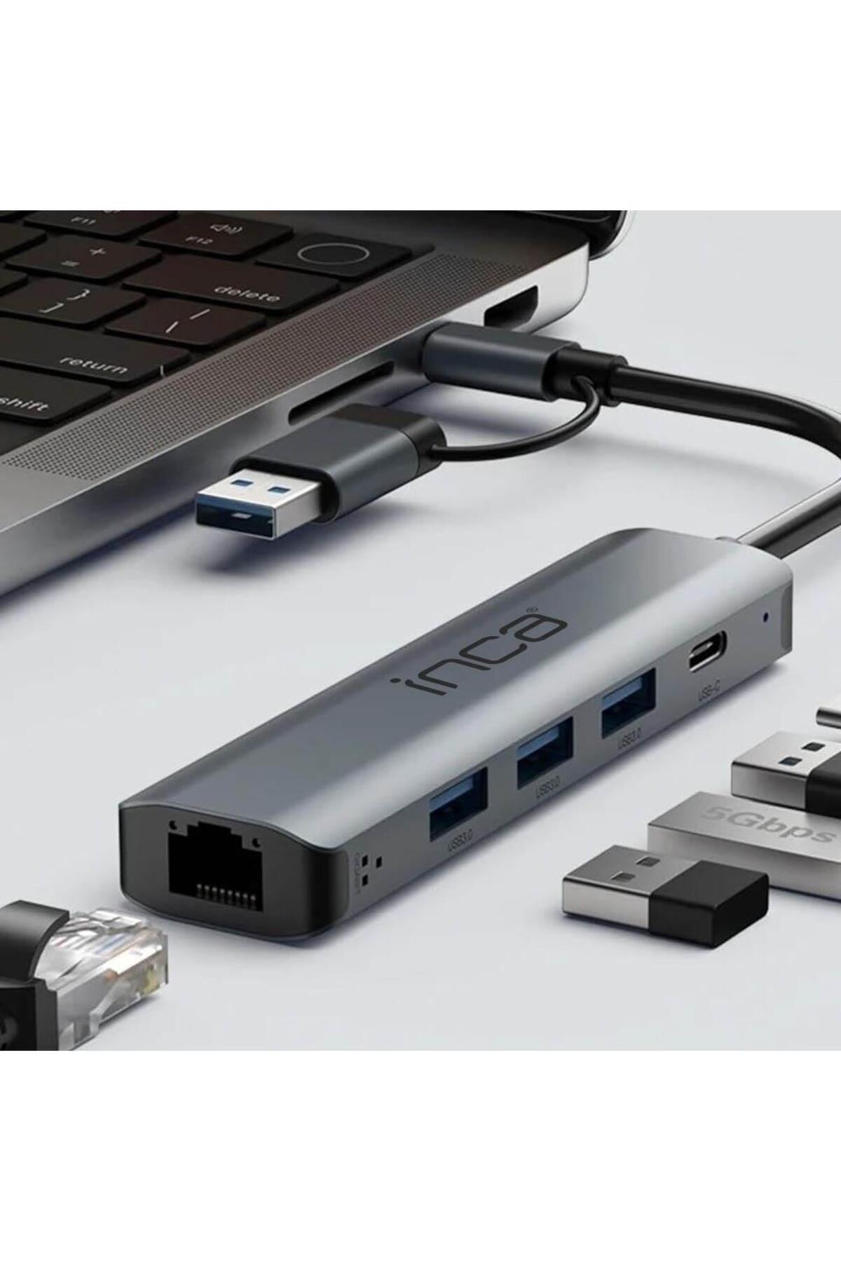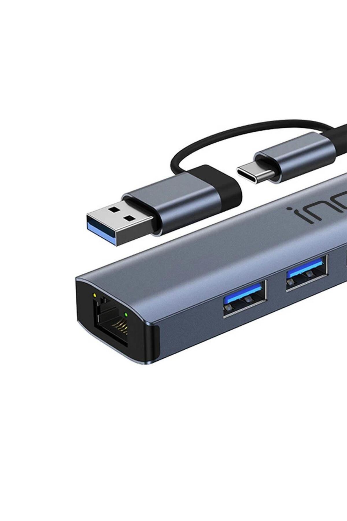 IUTP-5T USB/Type-C Hub X3 USB 3.0 + Type-C+Ethernet RJ45 Çoklayıcı Aluminyum Kasa