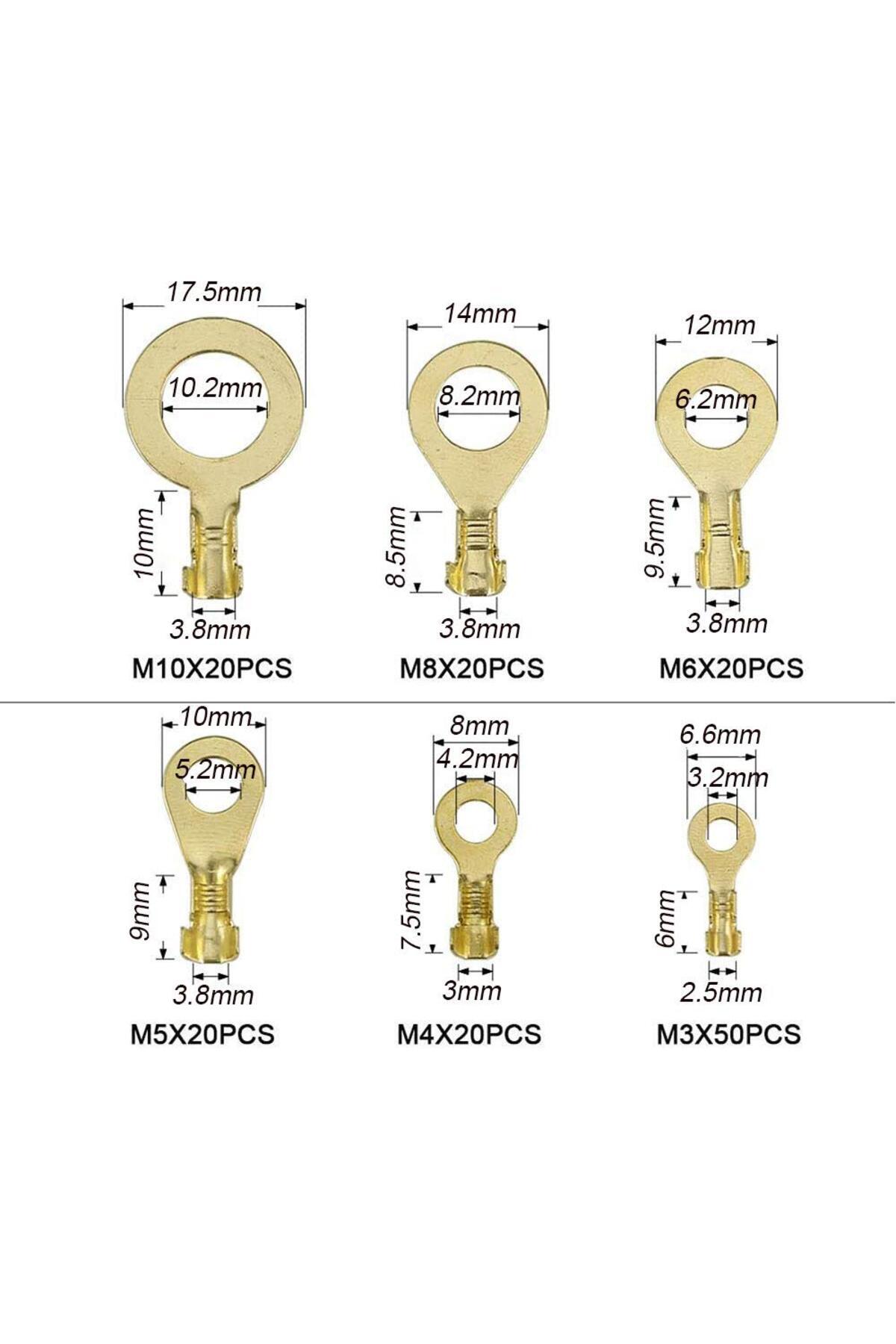 - Çeşitli boyutlarda halka kablo terminalleri içerir, böylece farklı kablo türlerine uyum sağlar.
