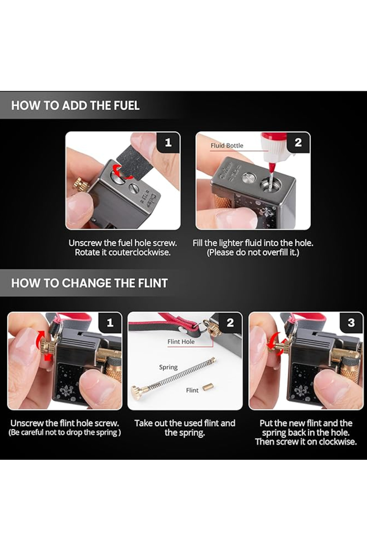 Paket, yedek parçalar içerir: fiberglas pamuk çekirdek*1 (biri alt vidada bulunur), kauçuk halka*4. Ek çakmak aksesuarları, bu kompakt çakmağın dayanıklı olmasını sağlar.