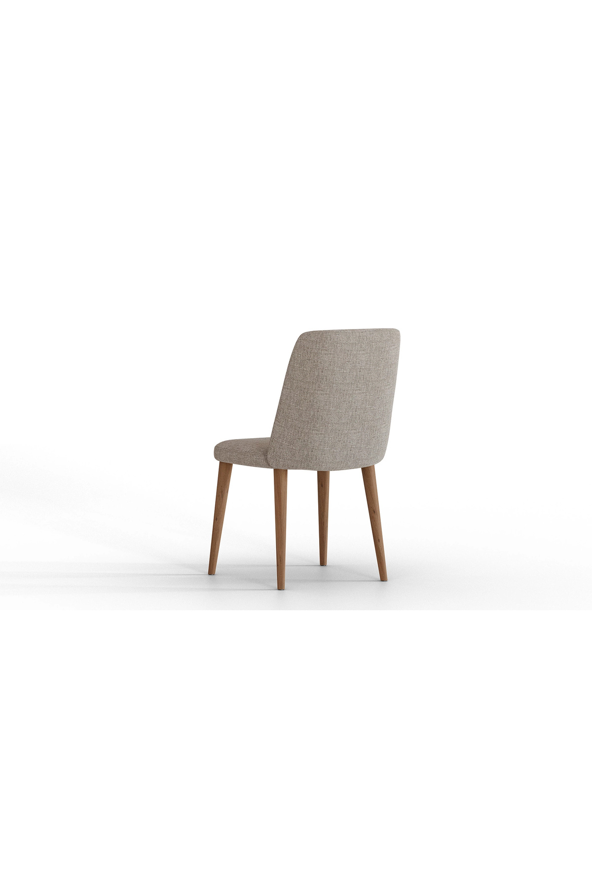 Larina yemek masası ile kusursuz bir uyum sergileyen ürün, kumaş kaplı gövdesi ve ahşap ayaklarıyla yalın bir görünüm sergiliyor.