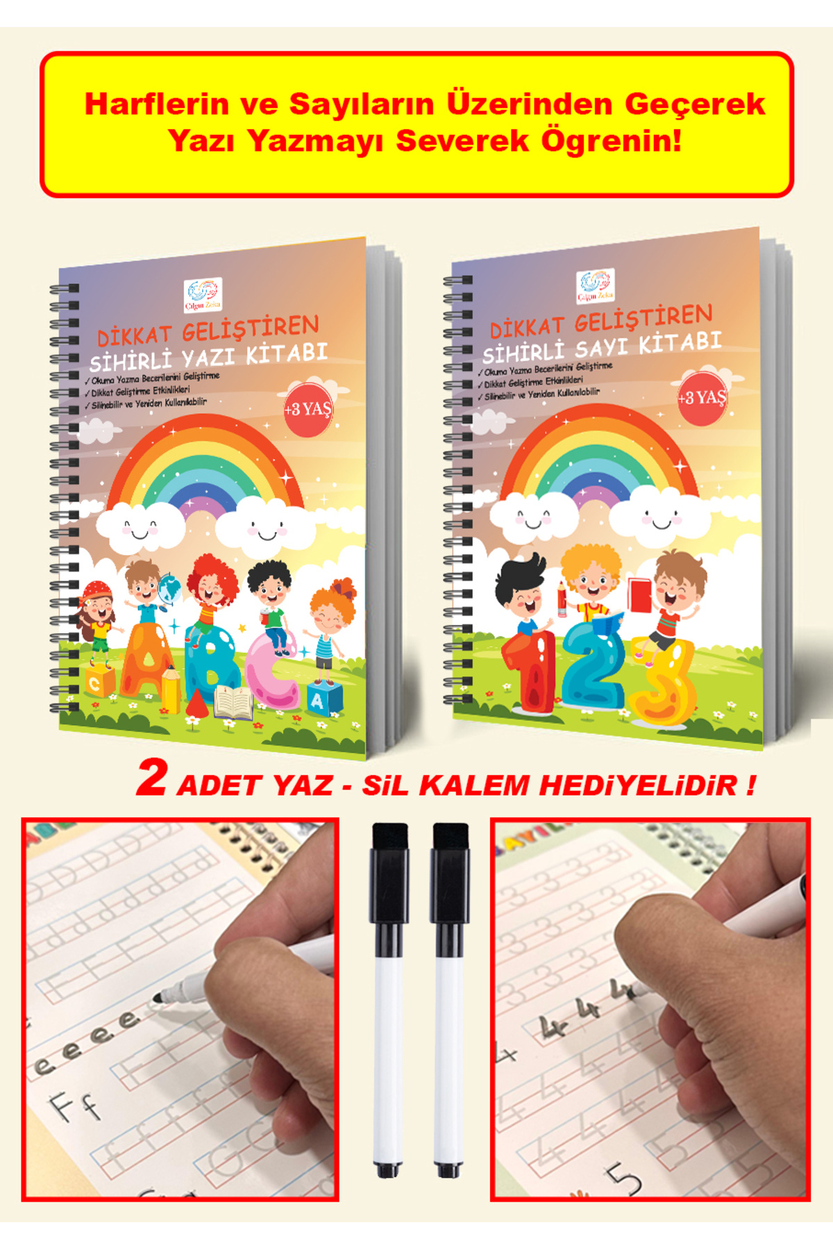 Harfleri ve Sayıları Yazmayı Öğreten Kitap | 2 Adet Silinebilir Kalem Hediyeli Kitap YAZ SİL KİTAP Bu Kitap