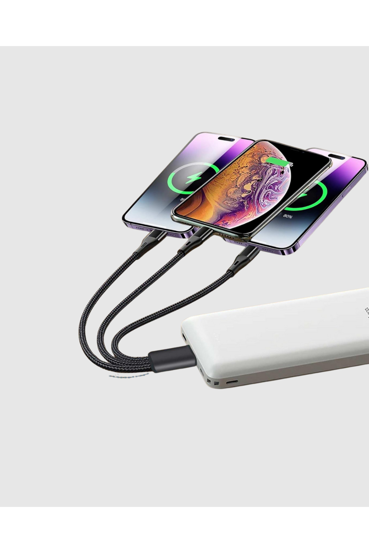 Her cihaz için ayrı kablo taşıma derdine son!3’ü 1 Arada Şarj Kablosu, iOS, Android ve Type-C girişli cihazlarla tam uyumlu çalışarak tüm şarj ihtiyaçlarınızı tek seferde çözer.