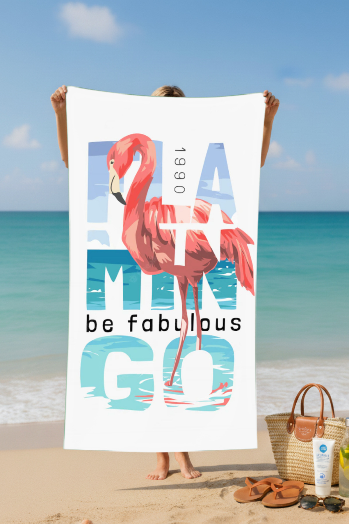 FİLAMİNGO1 DESENLİ Pamuk Plaj Havlusu – Desenli Tasarım – 75x150 cm