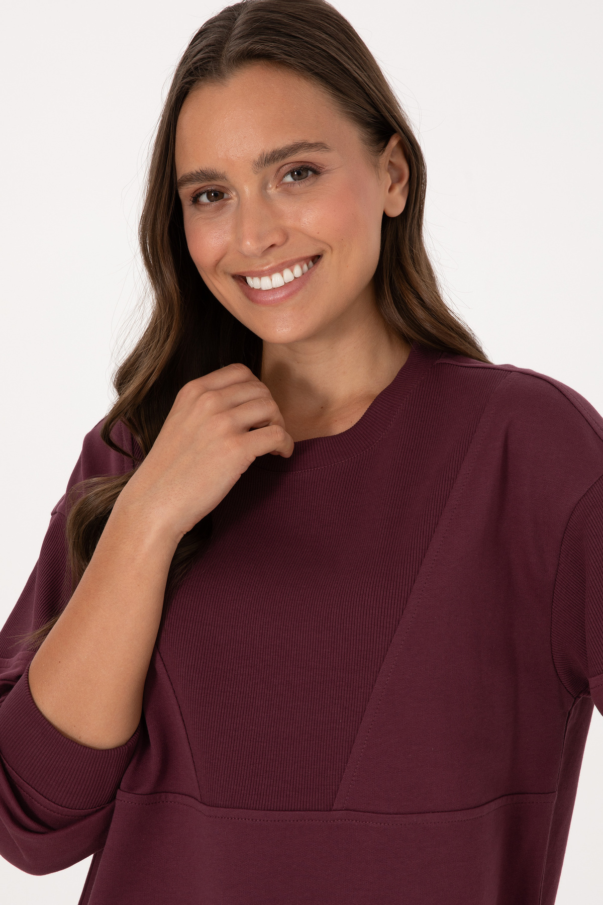Kadın Bordo Pamuklu Bisiklet Yaka Sweatshirt 50314170-VR177