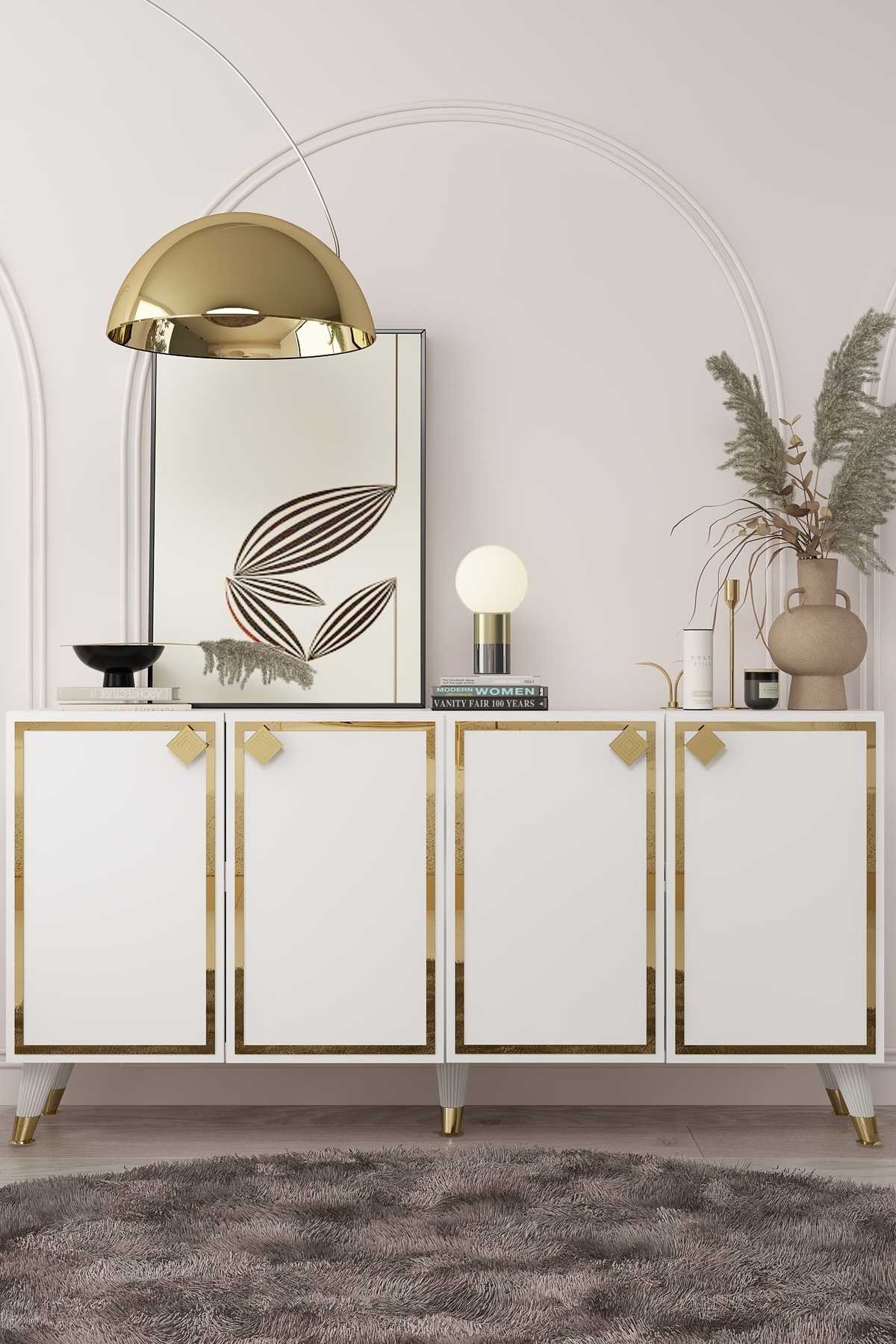 8206-1DD KB150 KONSOL, TV ÜNİTESİ BEYAZ-ALTIN