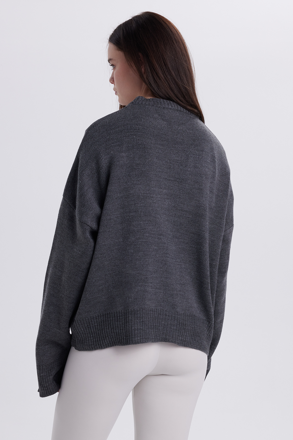 Kadın Oversize Geniş Kesim Bisiklet Yaka Antrasit Kazak