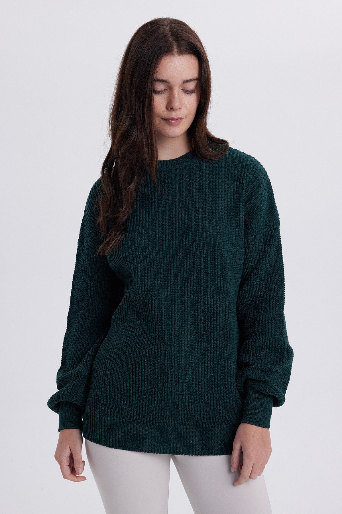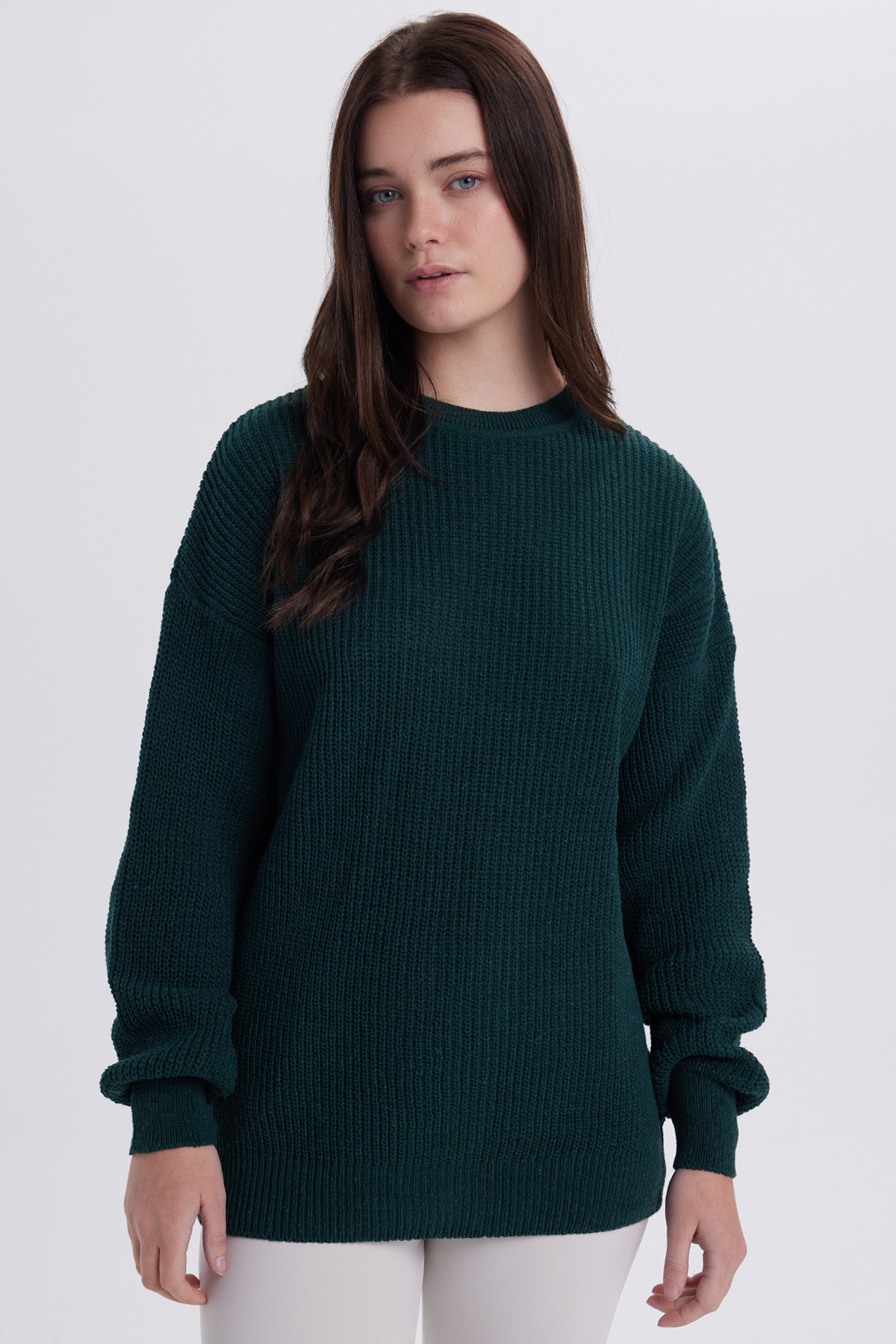 Rahat ve şık bir görünüm için oversize kesim, günlük kullanımda konfor sağlar Bisiklet yaka tasarımı modern ve sade bir stil sunar Örgü dokuma tipi kazaklara zarif bir dokunuş katarken dayanıklılığı artırır Cepsiz tasarımı minimalist ve temiz bir görünüm elde etmenize yardımcı olur Orta kalınlıkta triko kumaşı mevsim geçişlerinde ideal sıcaklık sağlar Esnek yapısı sayesinde hareket özgürlüğünüzü kısıtlamaz Günlük kombinlerde tek başına veya katman halinde rahatlıkla kullanılabilir