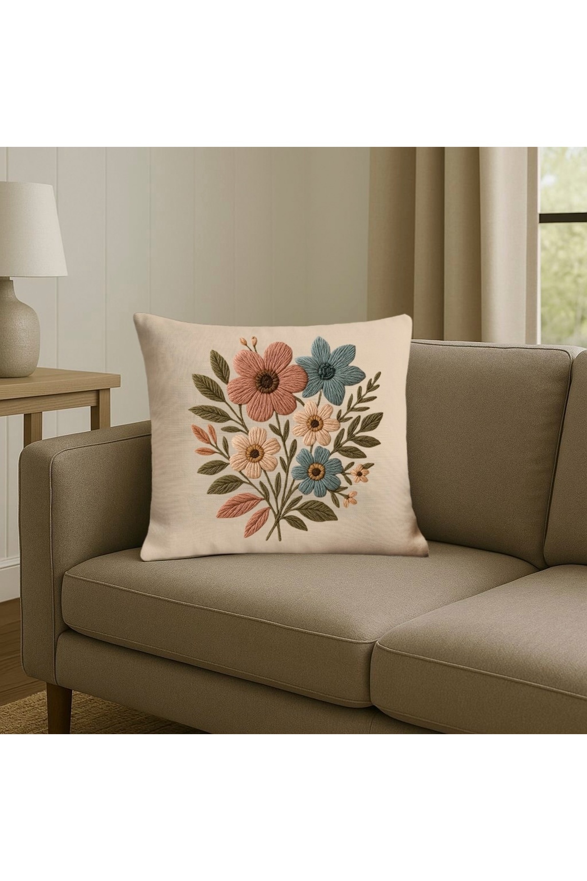 Modern dekorasyonun vazgeçilmez bir parçası olan bu çiçekli kırlent kılıfı, evinizin atmosferini canlandırır.