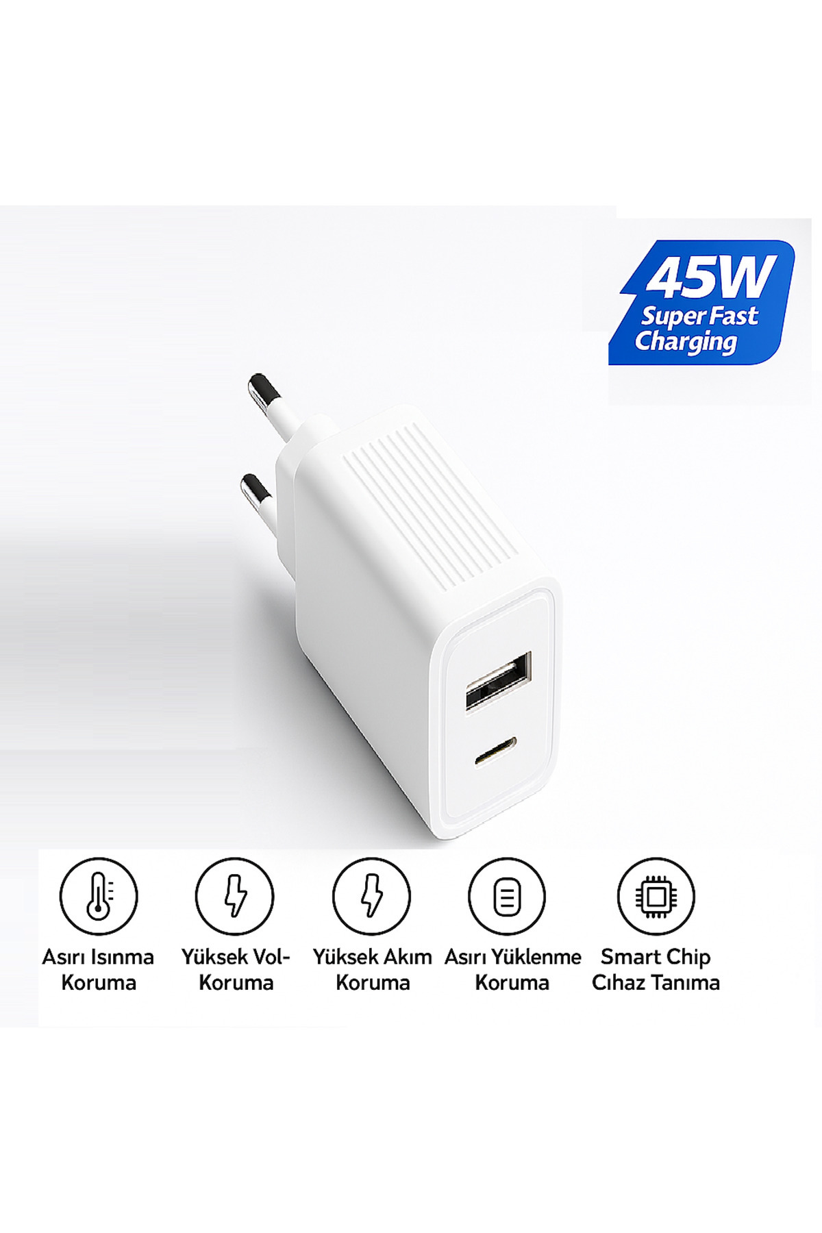 TYPE-C 45W ULTRA HIZLI ÇOKLU ŞARJ ADAPTÖRÜ REALME 12 4G UYUMLU QC 3.0 + PD