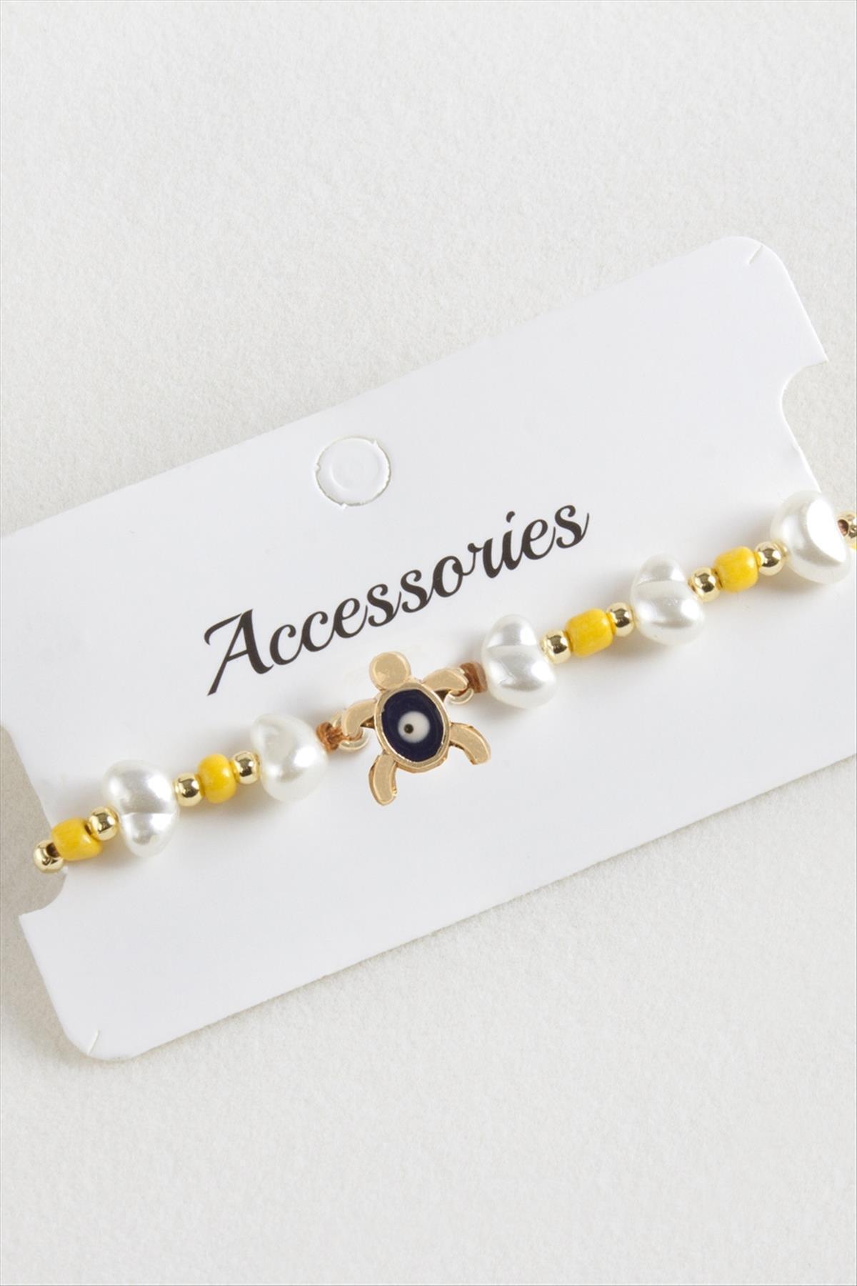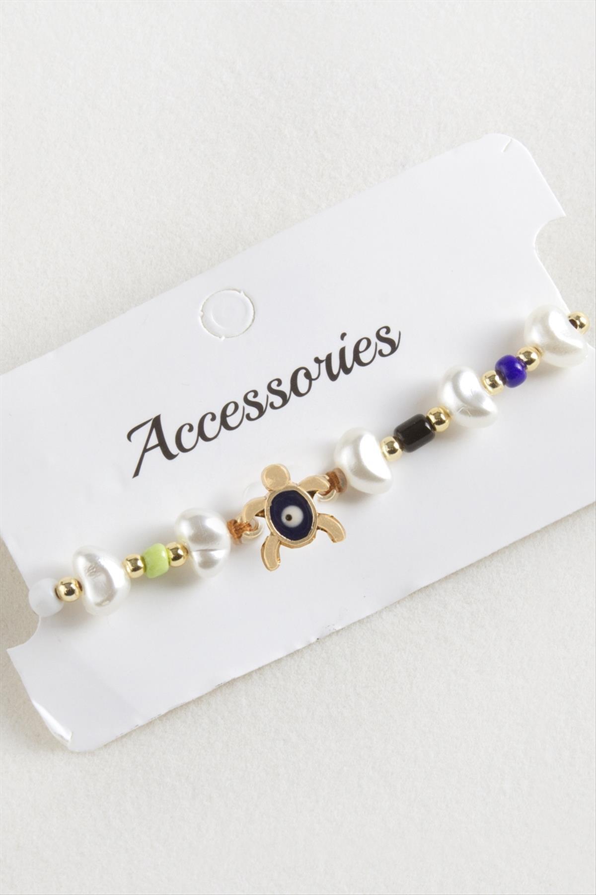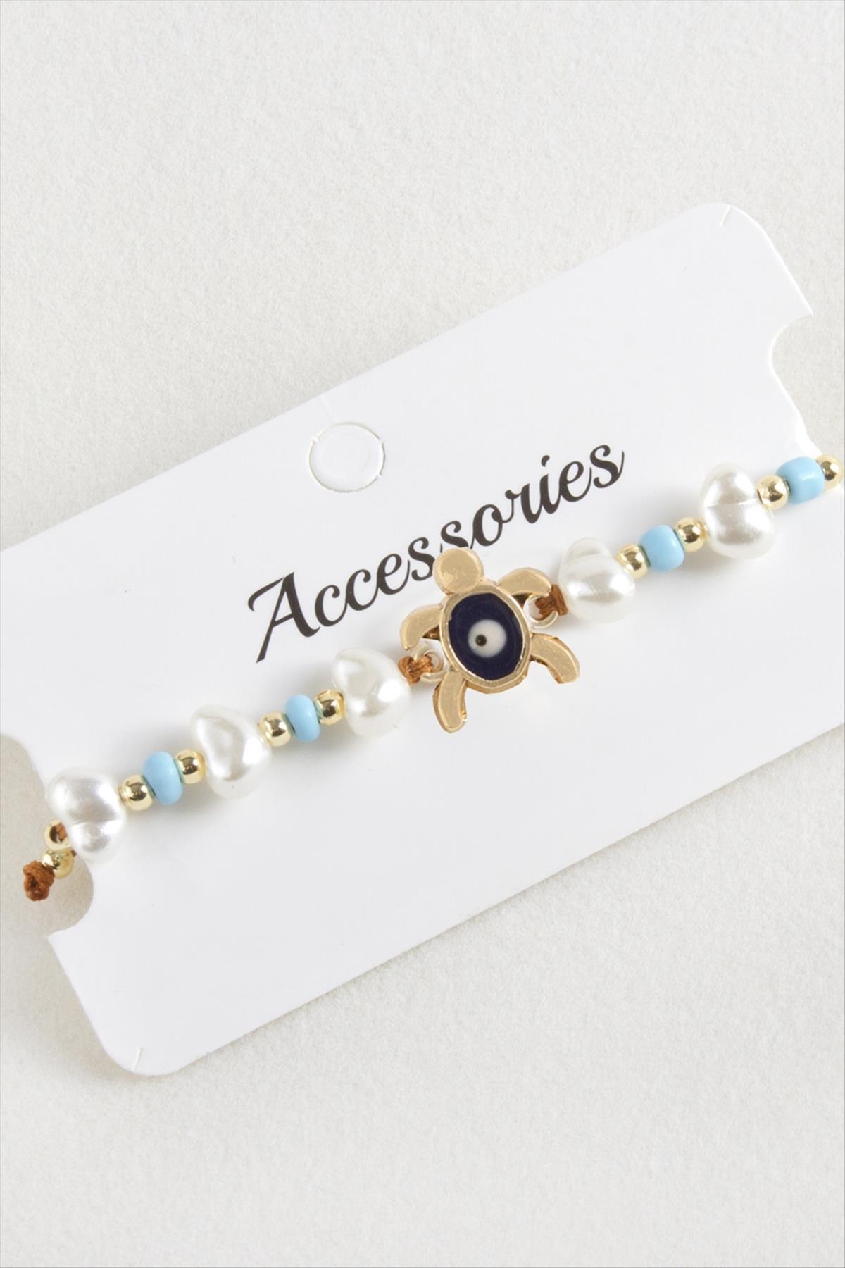 Kaplumbağa Boncuk İnci Makrome İp Bileklik
