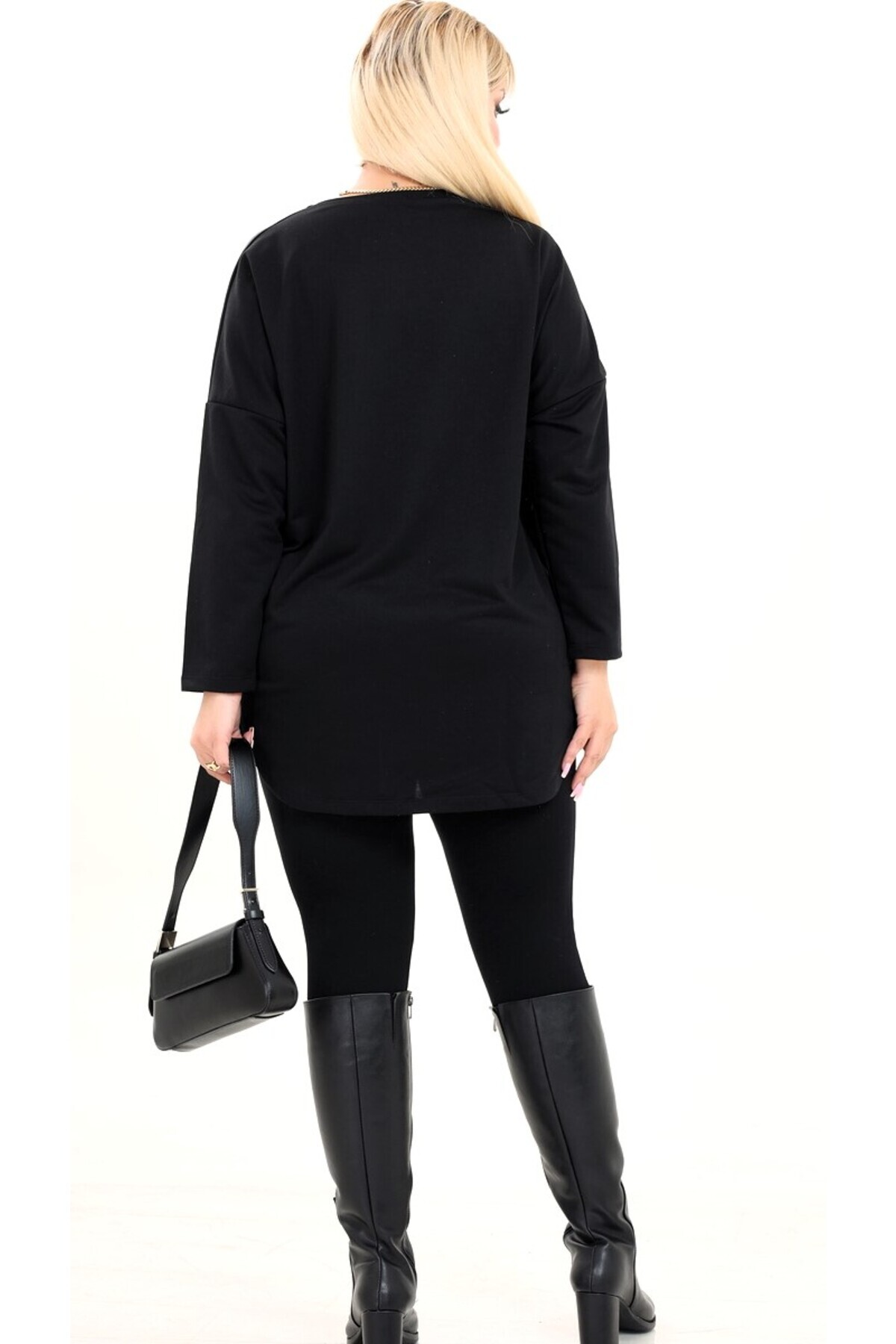 - Uzun tunik silueti, rahat hareket etme özgürlüğü sunarken şık bir duruş sergiler.