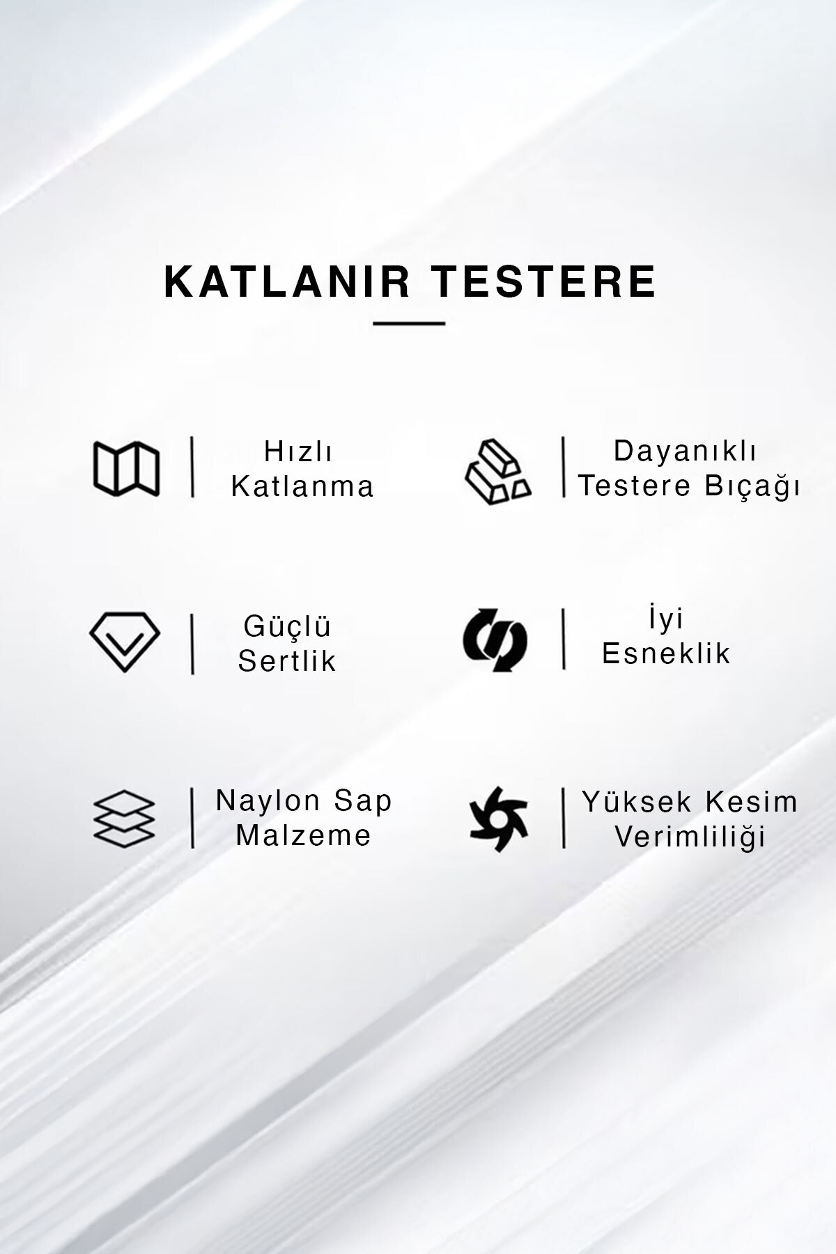 Doğada, kampta ya da yolculukta ihtiyacınız olan güçlü ve pratik testere! Katlanır testere, hafif yapısı ve dayanıklı tasarımıyla her koşulda güvenilir bir kesim deneyimi sunar.