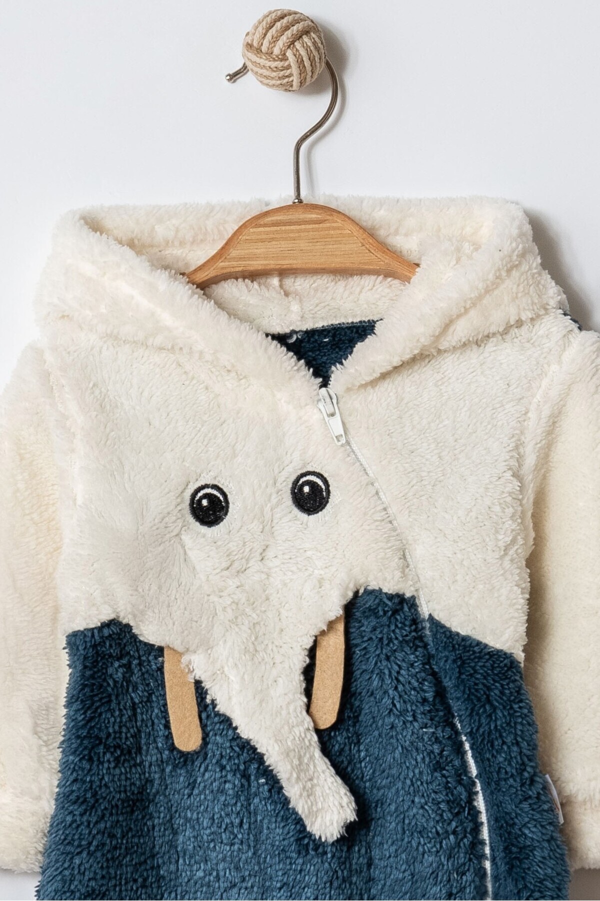 Unisex Bebek Fil Desenli Kapüşonlu Peluş Tulum