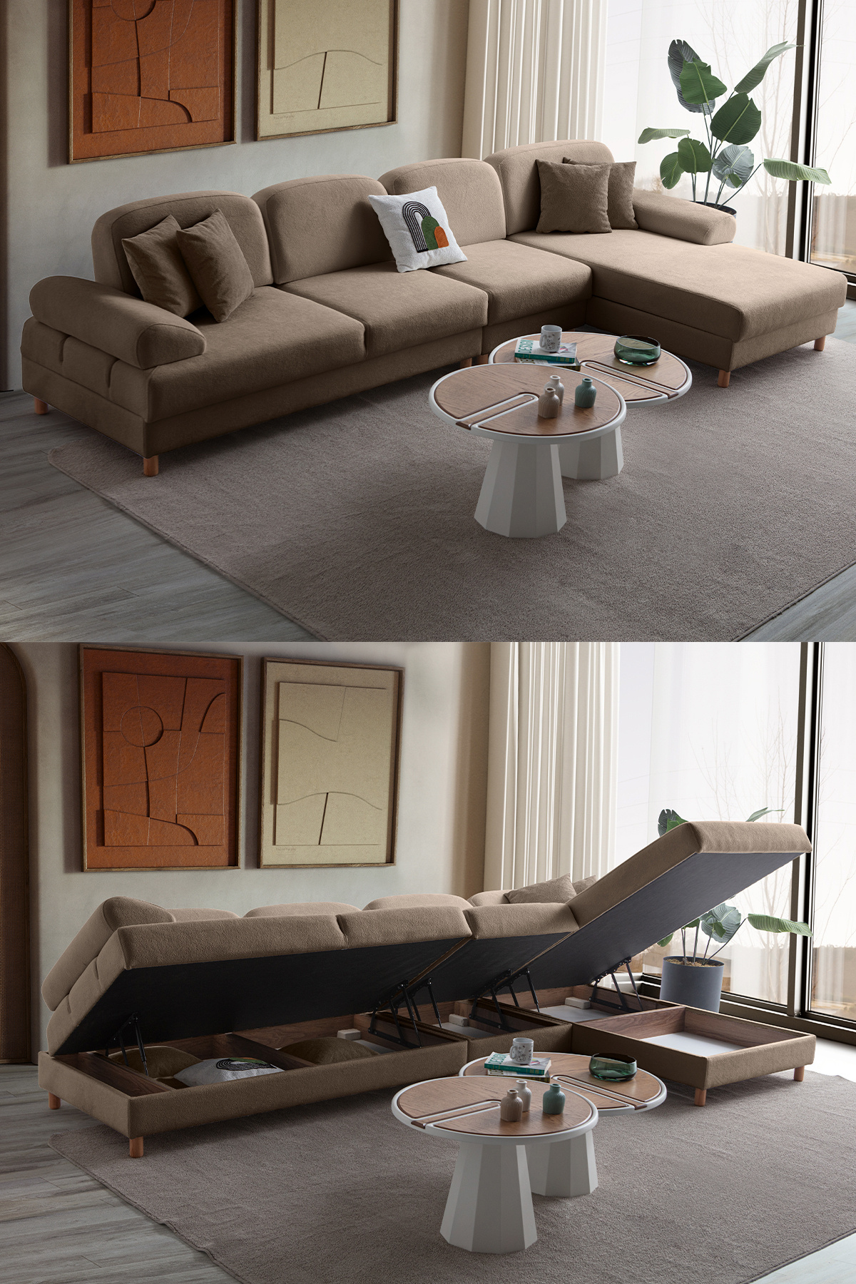 Aries Yataklı Sandıklı Piyonlu Köşe Koltuk TakımıTakım İçeriği: 1 Adet Piyon Modüllü Köşe Koltuk TakımıKöşe Koltuk Ölçü Bilgileri: - Genişlik: 356/180 cm- Derinlik: 93 cm- Yükseklik: 85 cmDinlenme Genişliği: 100 cmÜrün Özellik Bilgileri: Kumaş: Pamuklu polyester türü olan Coco kumaş kullanılmıştır.
