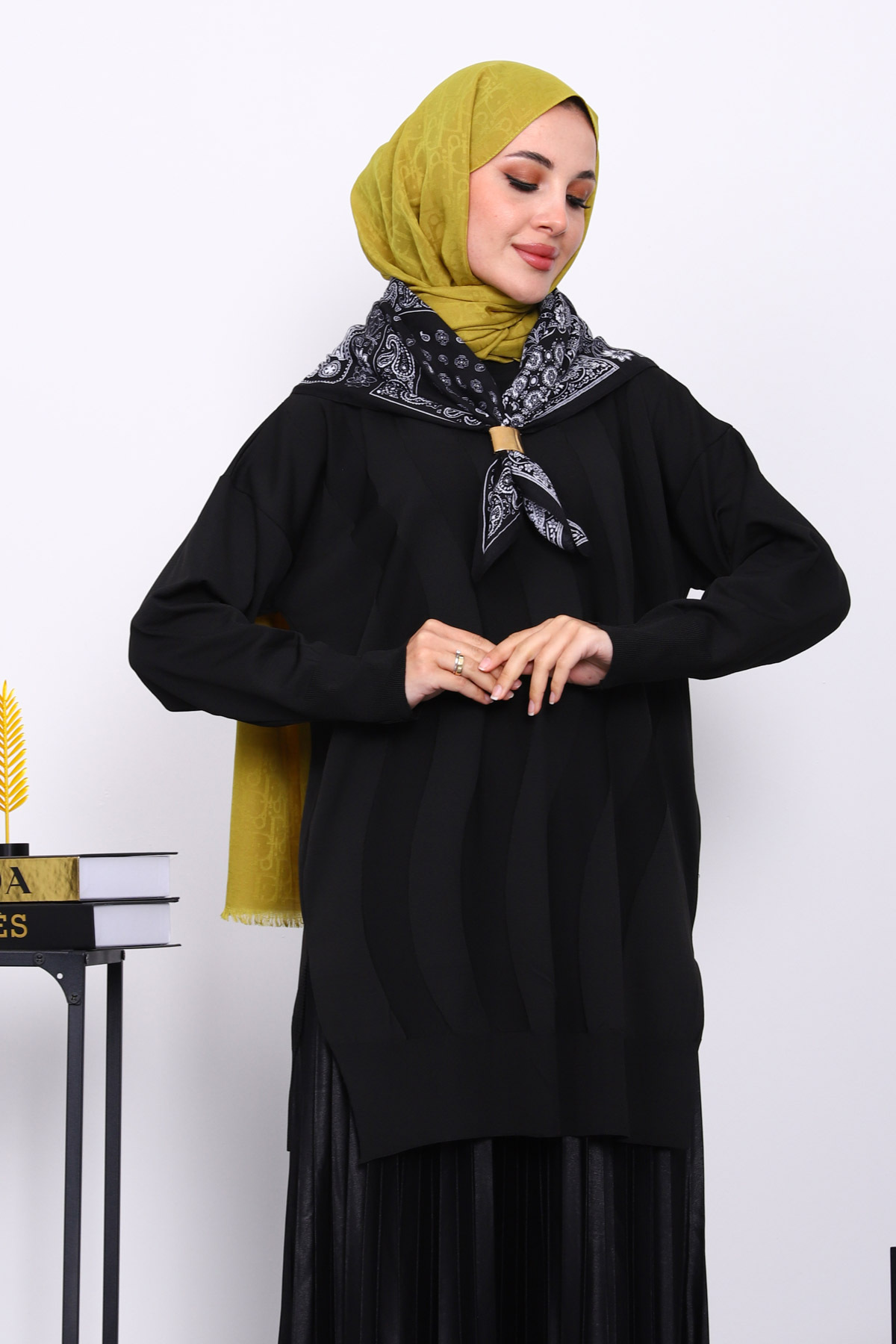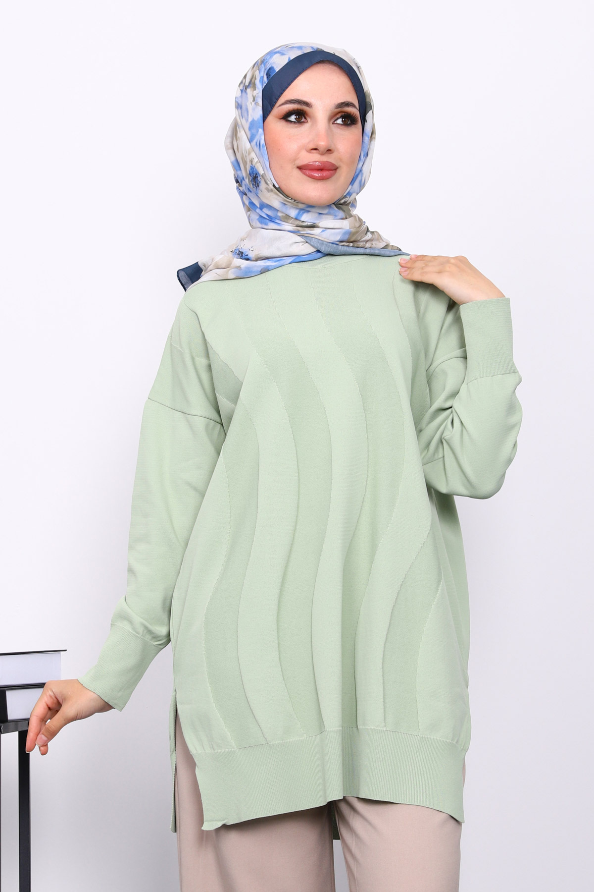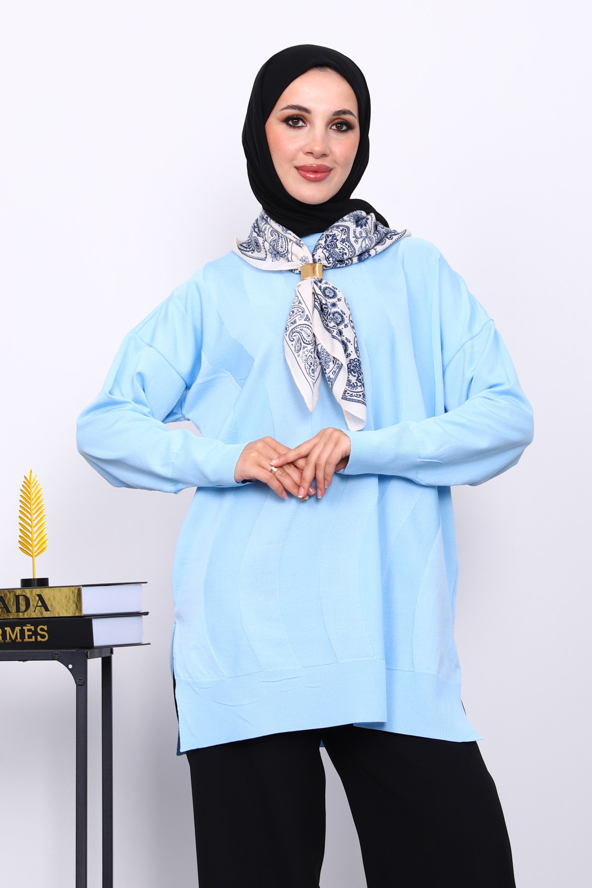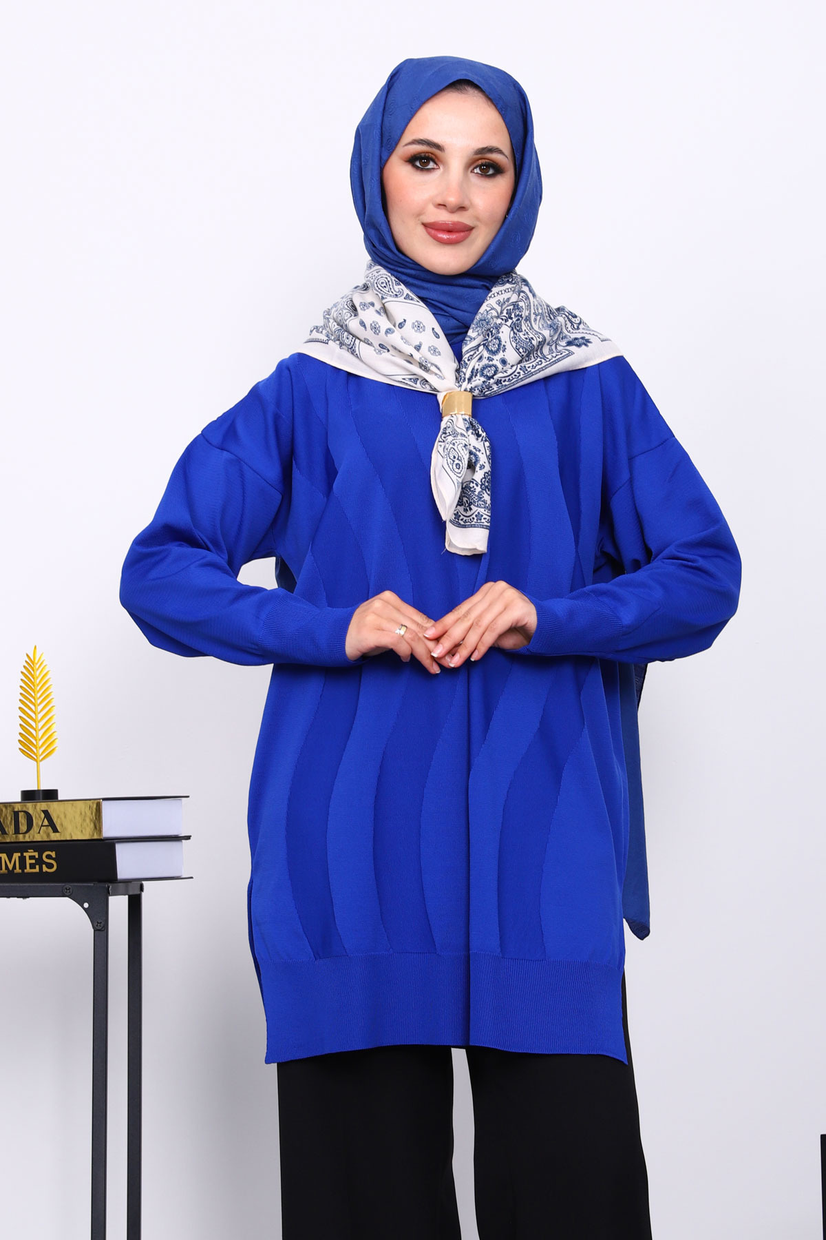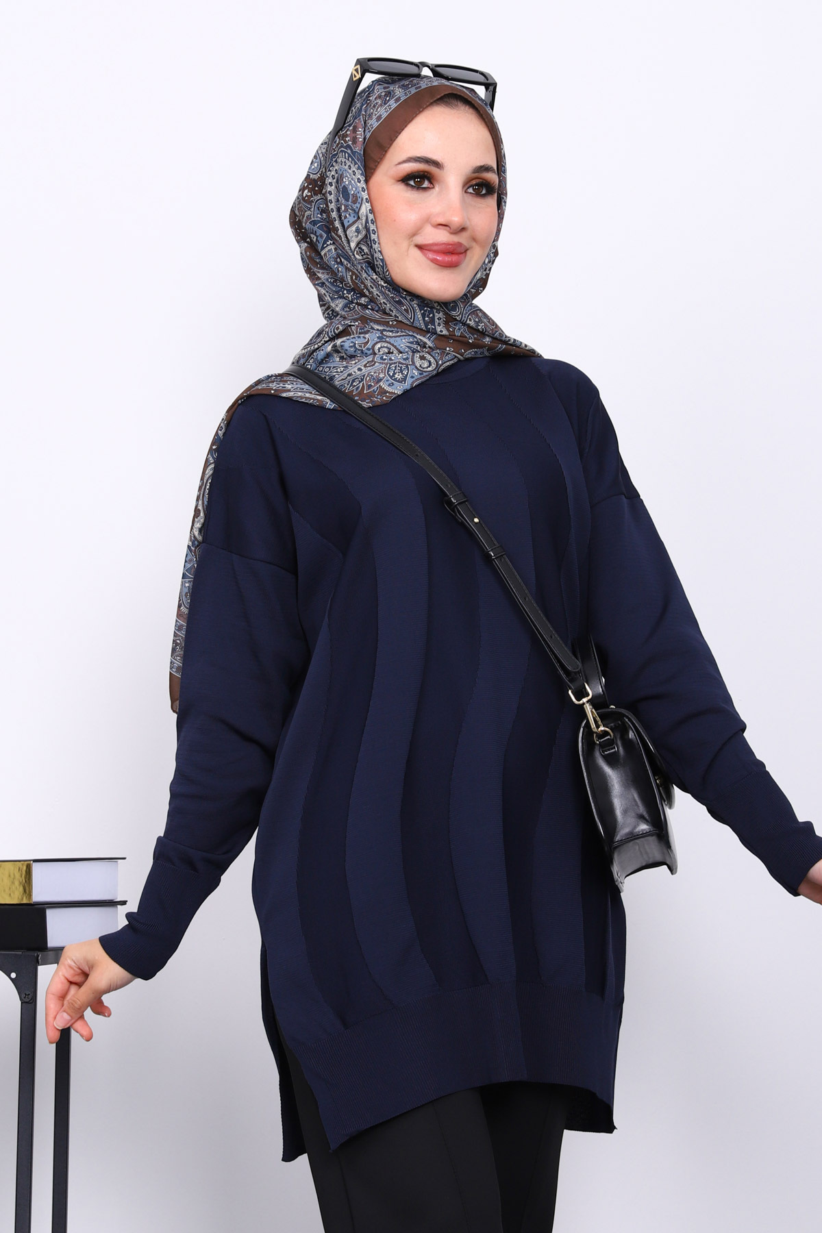Lacivert Bisiklet Yaka Soğuk İplik Triko Tunik